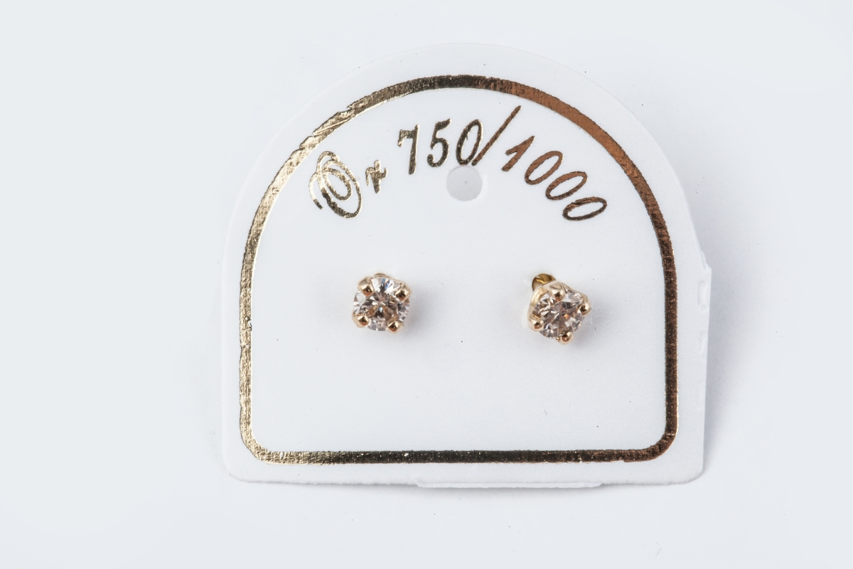 Paire de BOUTONS d'OREILLE en or jaune, sertie d'un petit diamant rond de taille brillant.