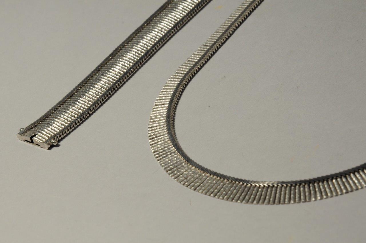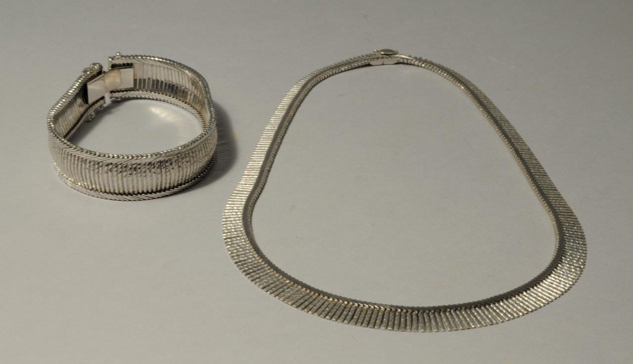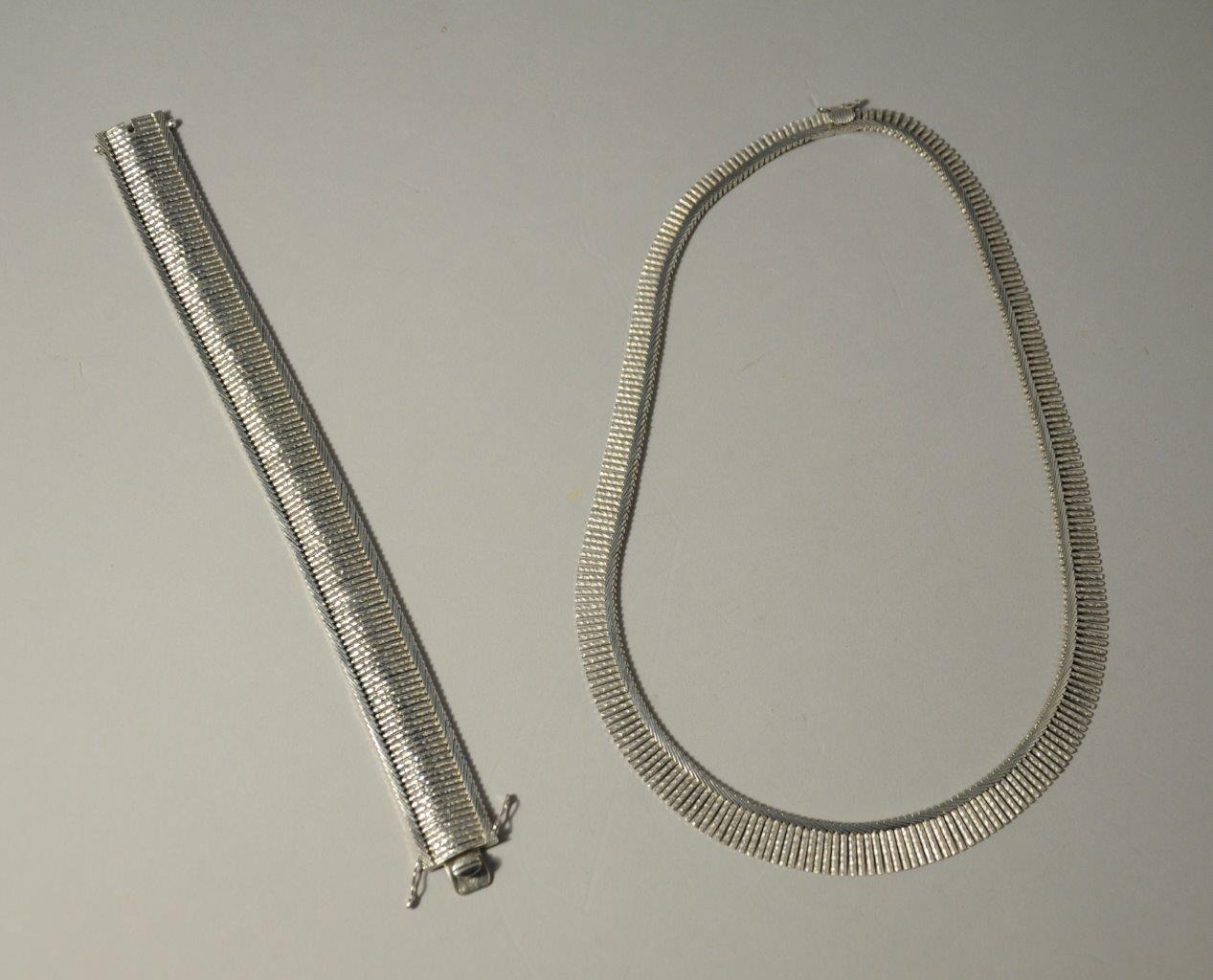 Bracelet: 38,5 g. Long. 18,5 cm. Collier: 38,9 g. Long 42,5 cm.