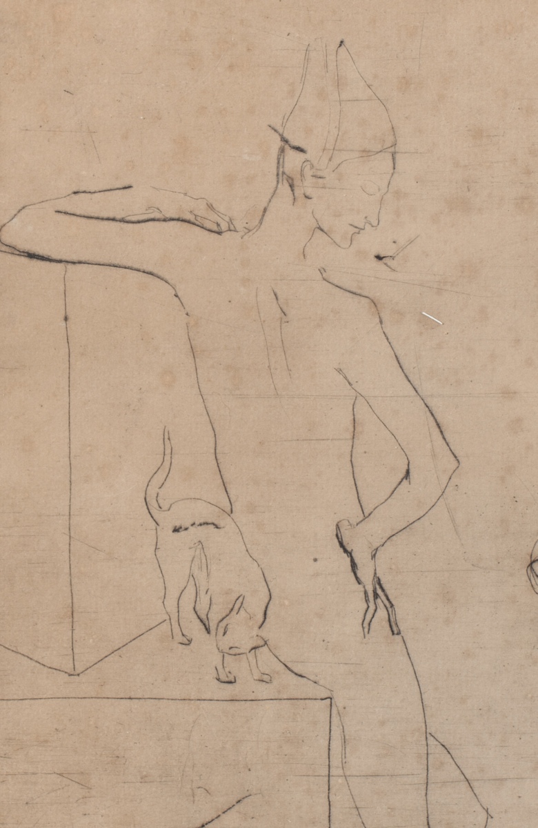 Pointe sèche, datée et signée dans l'épreuve, et retracée en bas à droite au crayon de papier dans la marge. Annotée au verso n°9.
