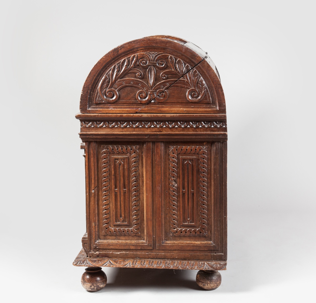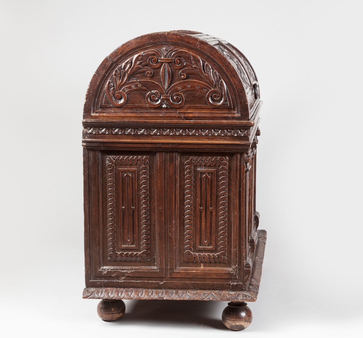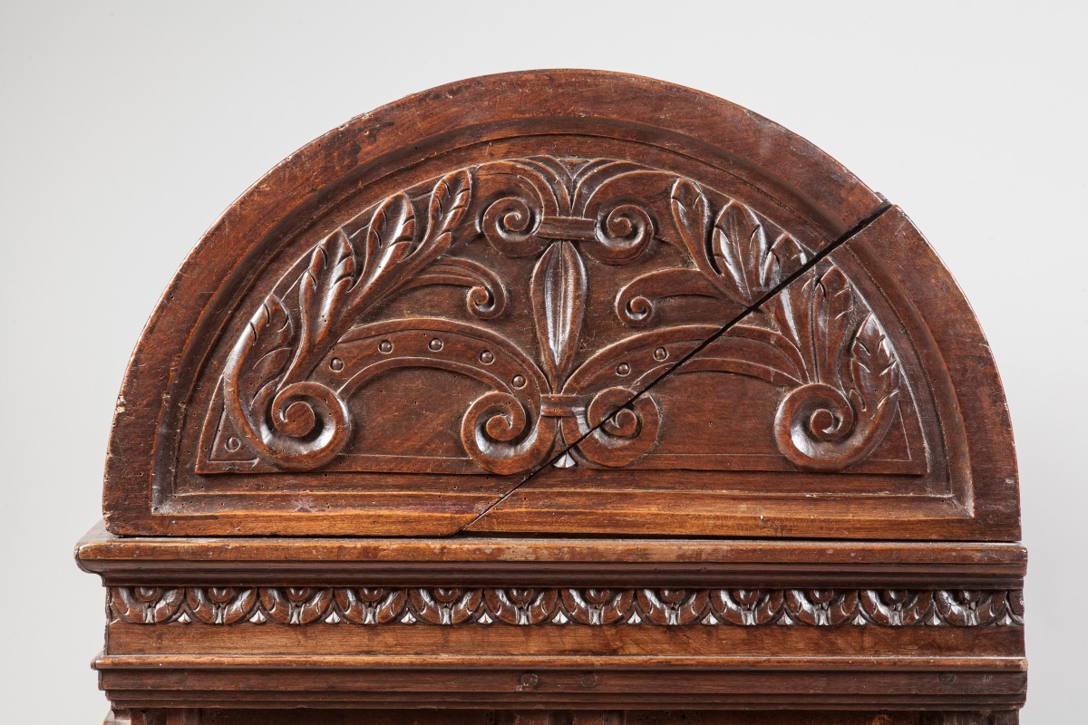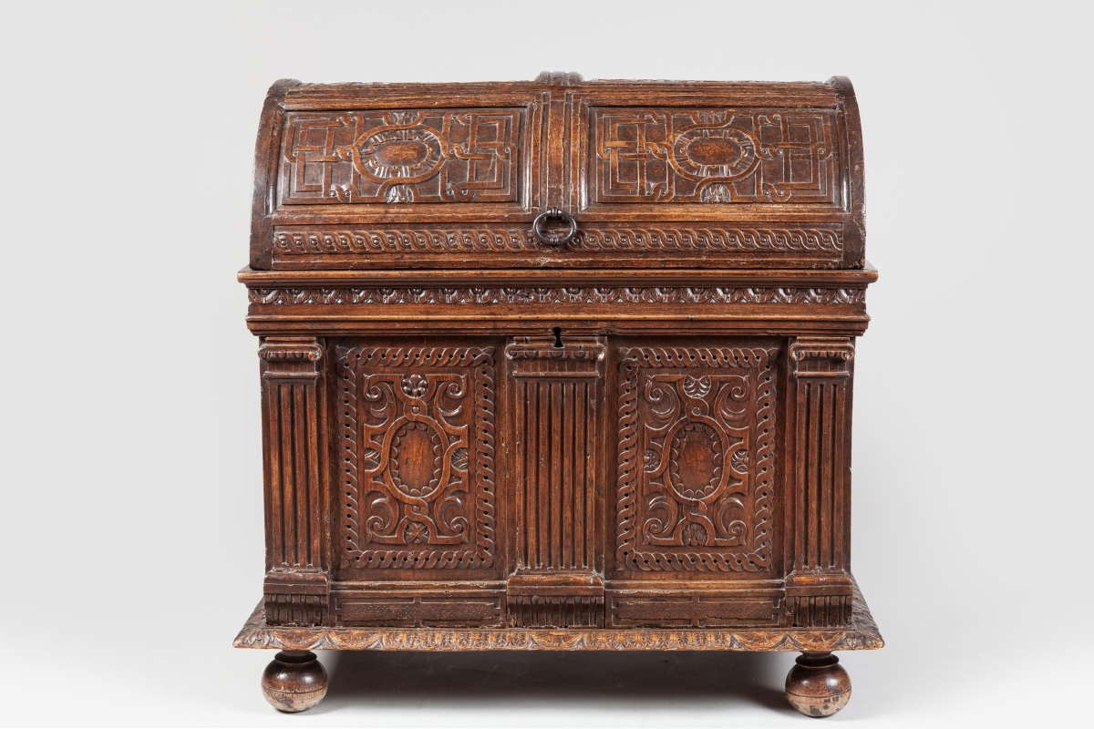 "MARIAGE CHEST". Natural sculpted and moulded wood. Ancient Renaissance work with some restorations. From the former collection of the Chaumont castle.