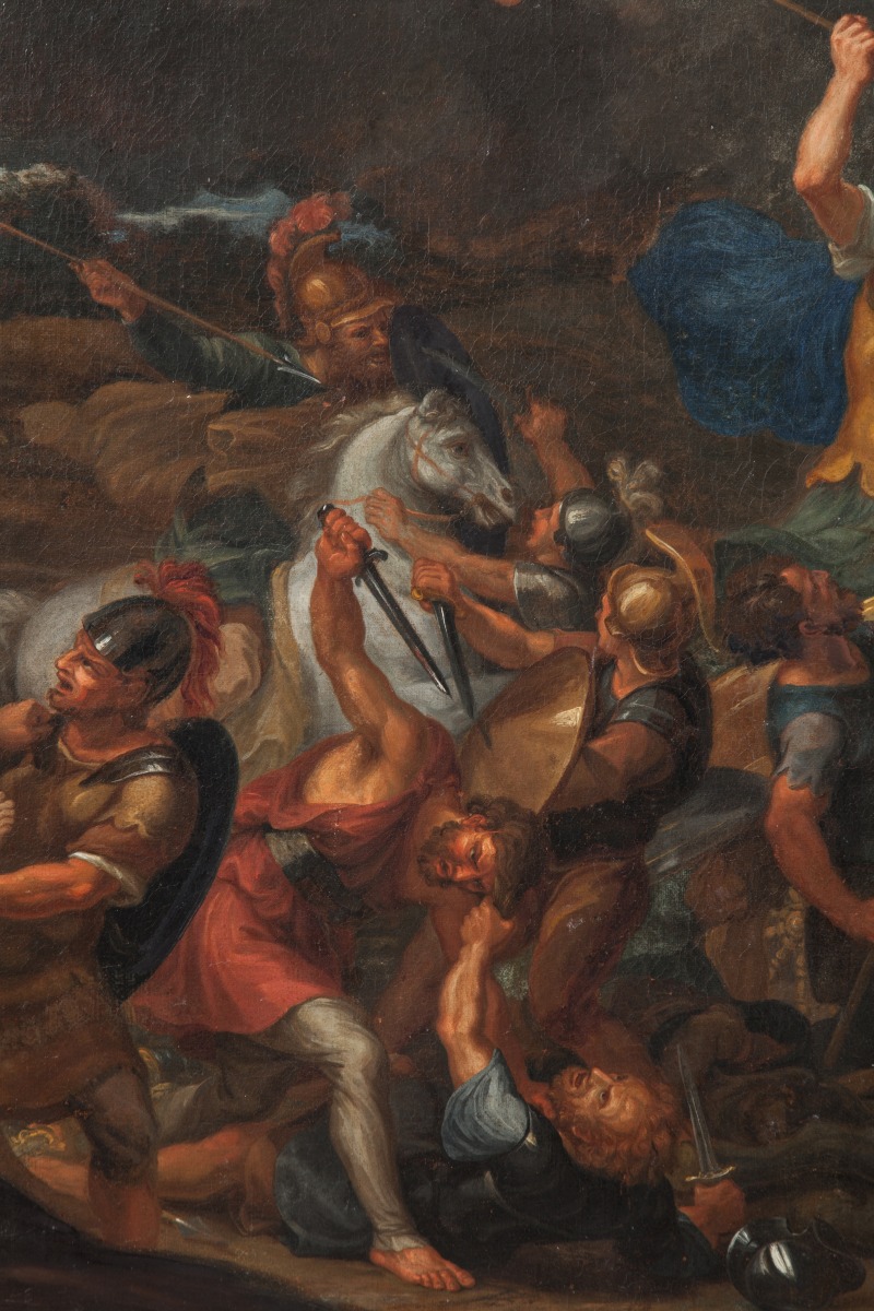 Par sa composition et son sujet, notre tableau se rapproche du Combat de Josué (Toile, 194 x 262 cm) conservé au musée des Beaux-Arts de Brest (voir P. Rosenberg, " Acquisitions de tableaux français du XVIIème siècle ", dans La revue du Louvre, 1972, n° 4-5, p. 306, reproduit fig. 9).