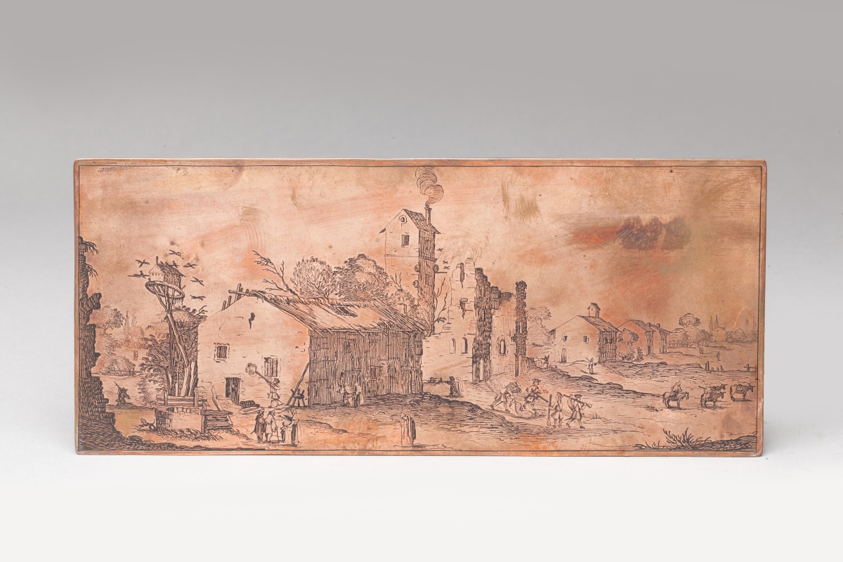 École FRANÇAISE du XVIIe ?Graveur anonyme.Paysage animé.Plaque de cuivre.8, 6...