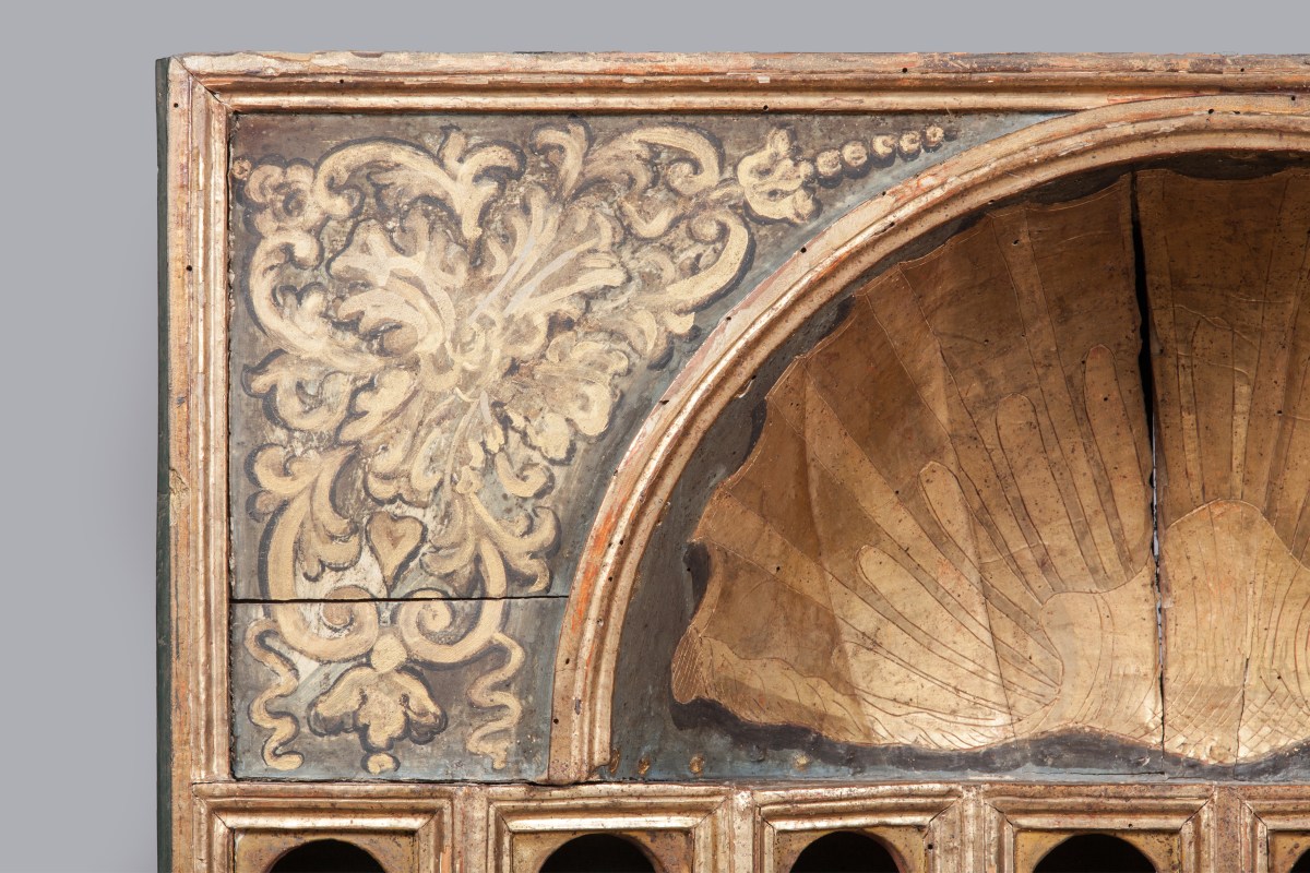 A PAIR OF rectangular ARMOIRES KNOWN AS "FOR COLLECTOR" in gilded wood. Italy. Probably Venice, 17th century. From the collection of French moviemaker René Clément, Monaco.