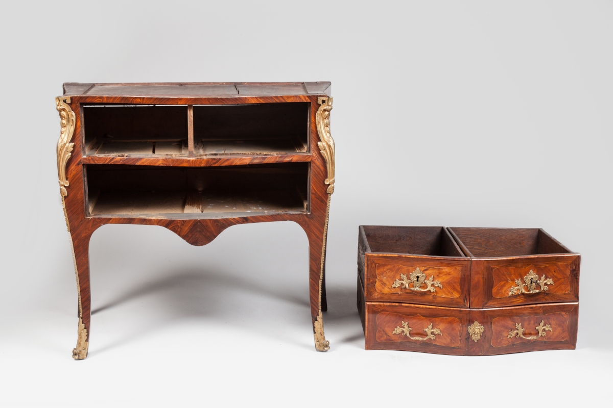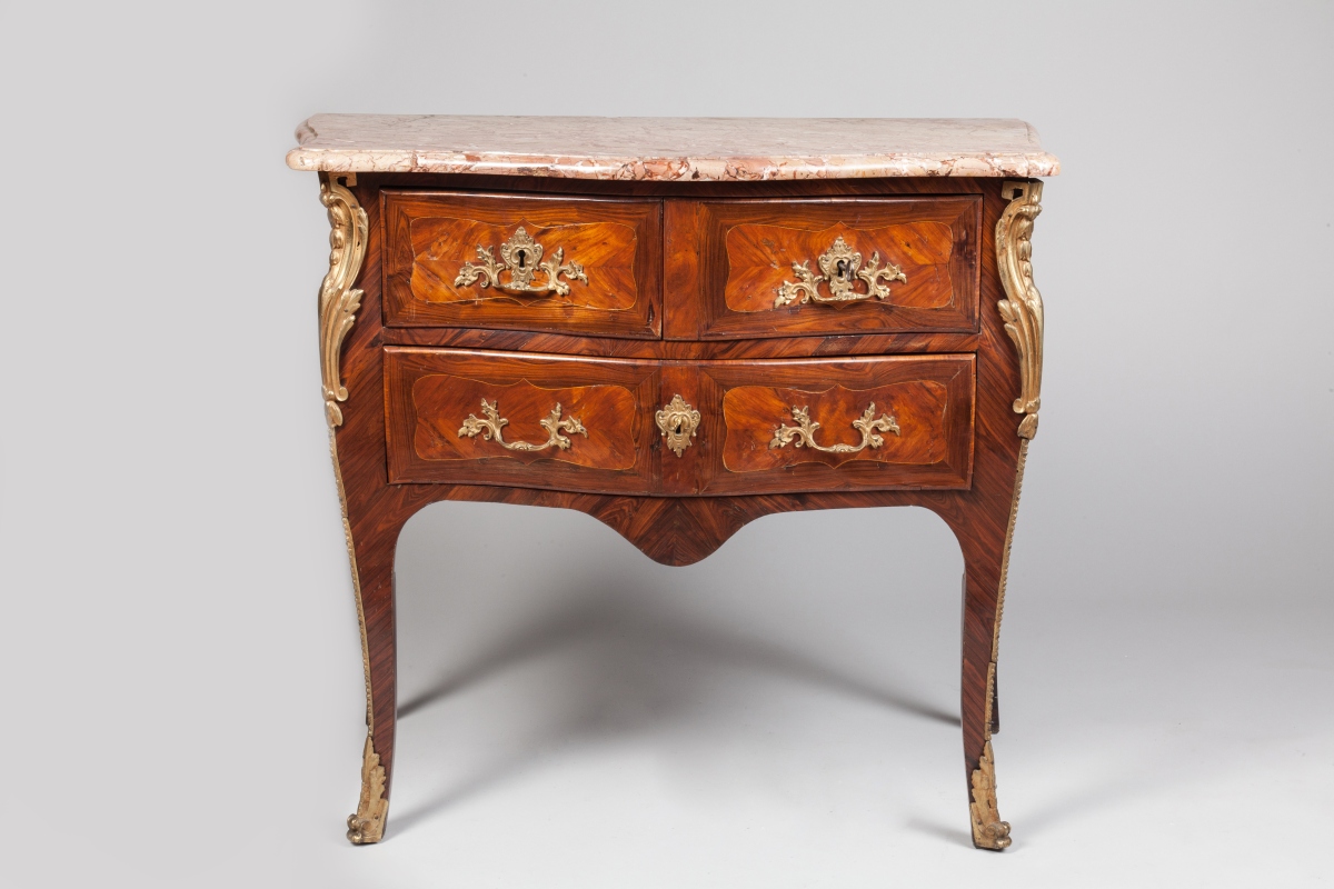 Rounded COMMODE with two rows of drawers. Bronze ornaments. Louis XV.