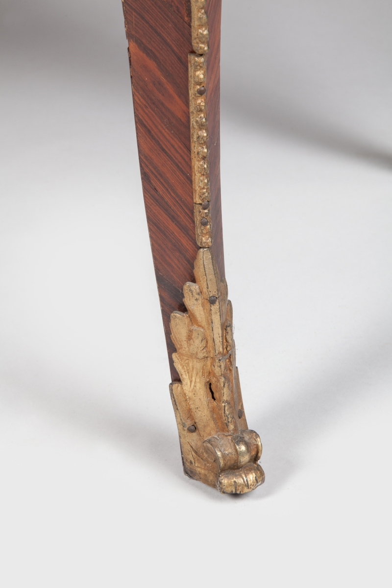 Ornements de bronze doré à feuillages. Dessus de marbre brèche rose (réparé).