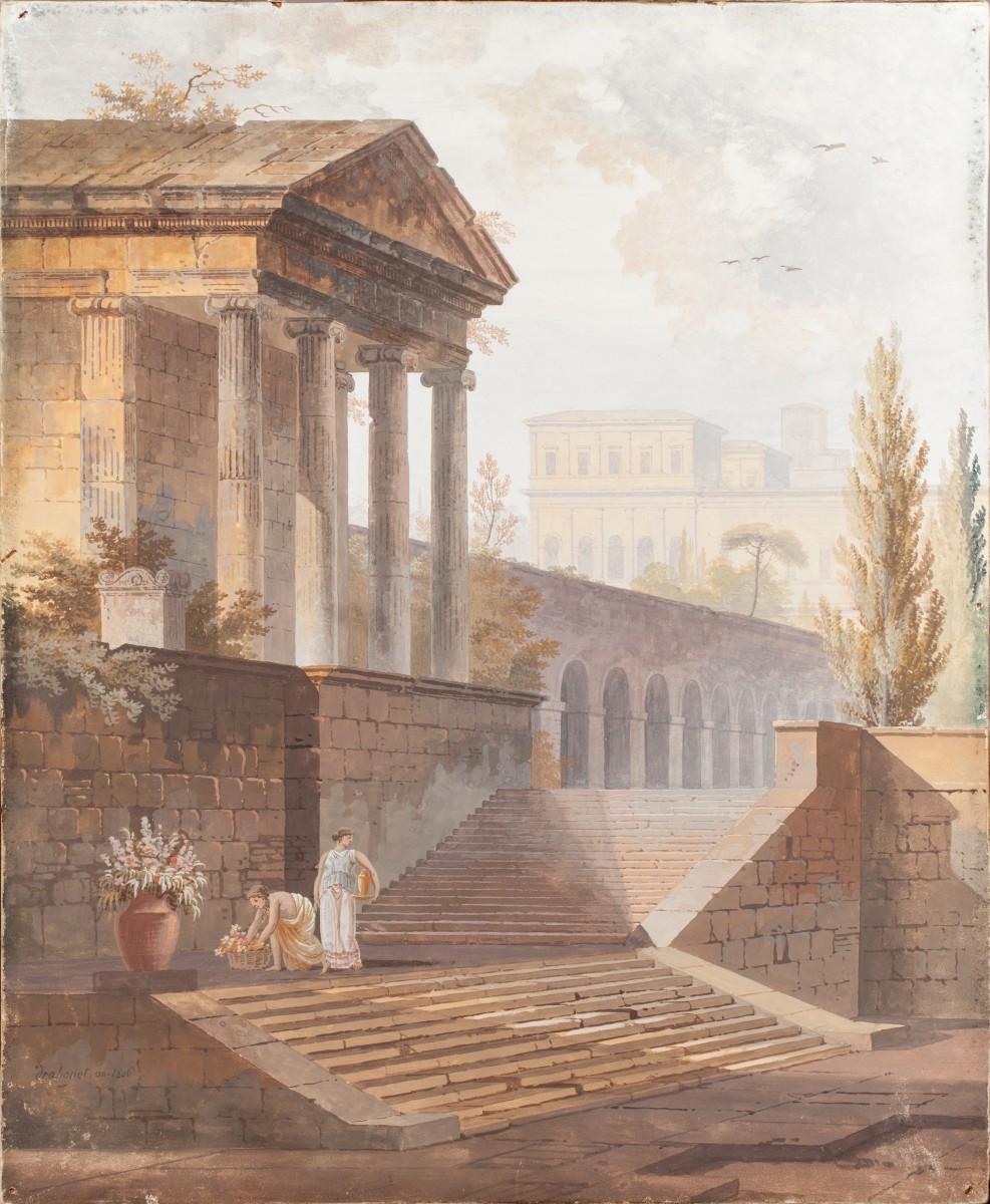 Pierre DRAHONET. Roman Ruins. A pair of signed gouaches, one of which is dated 1806.