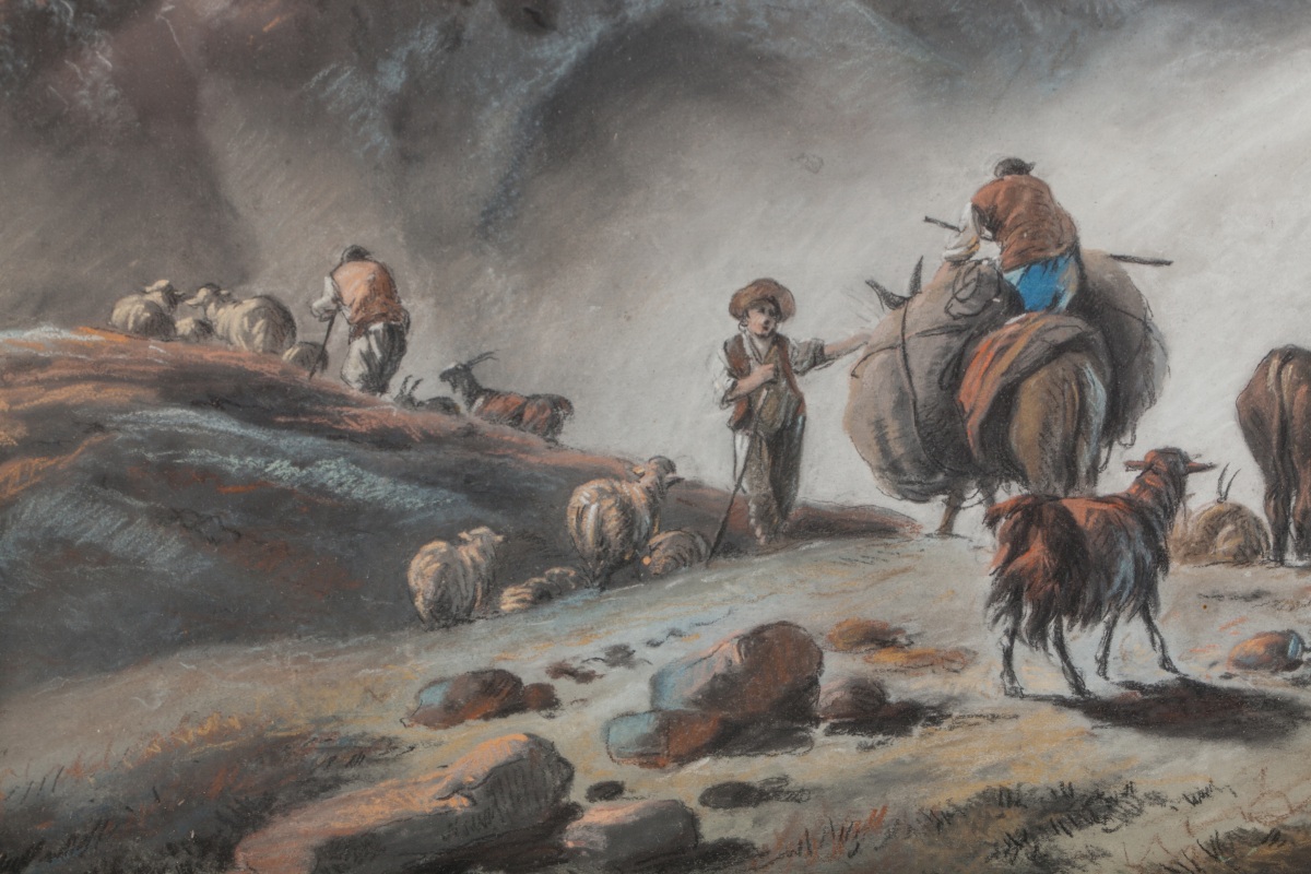 Jean Pillement se distingue par un double talent de paysagiste et de décorateur à l'aise avec les techniques les plus diverses: crayon, gouache, pastel, peinture à l'huile. Notre paire de paysages est un très bel exemple de Pillement comme paysagiste et pastelliste. Inspiré par les maîtres hollandais du XVIIe pour la composition, il utilise à merveille les couleurs des pastels pour égayer ses paysages et donner plus de vie à ses personnages.