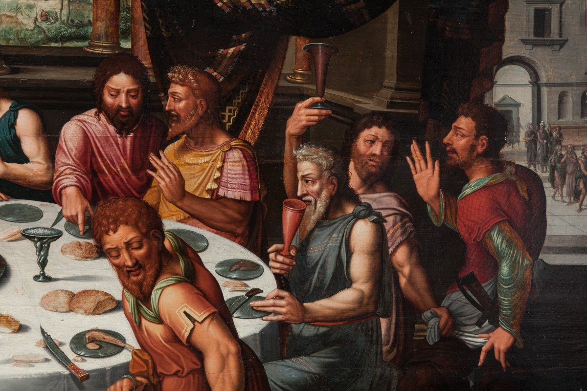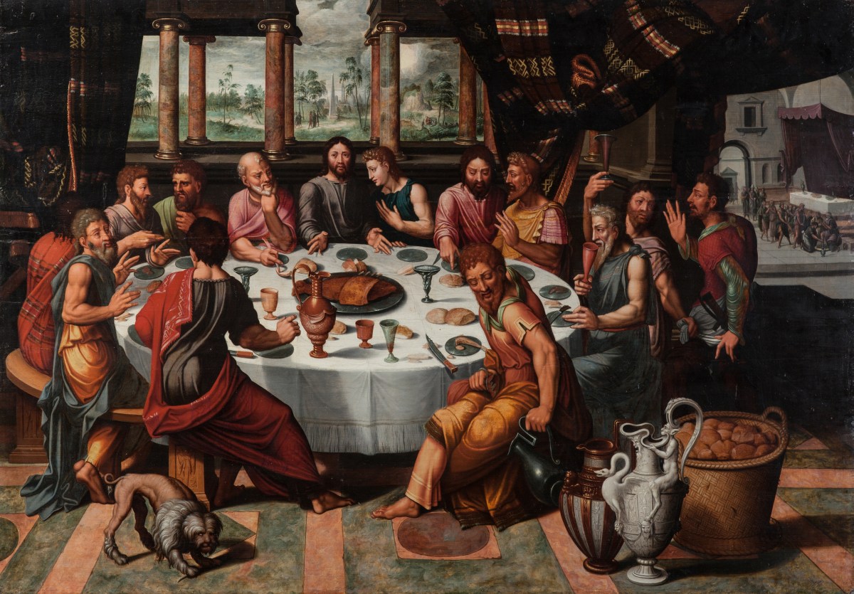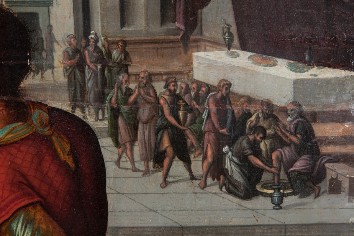 Entourage of Lambert LOMBARD. Flemish school, 16th century. The Holy Thursday. Parqueted oak panel.