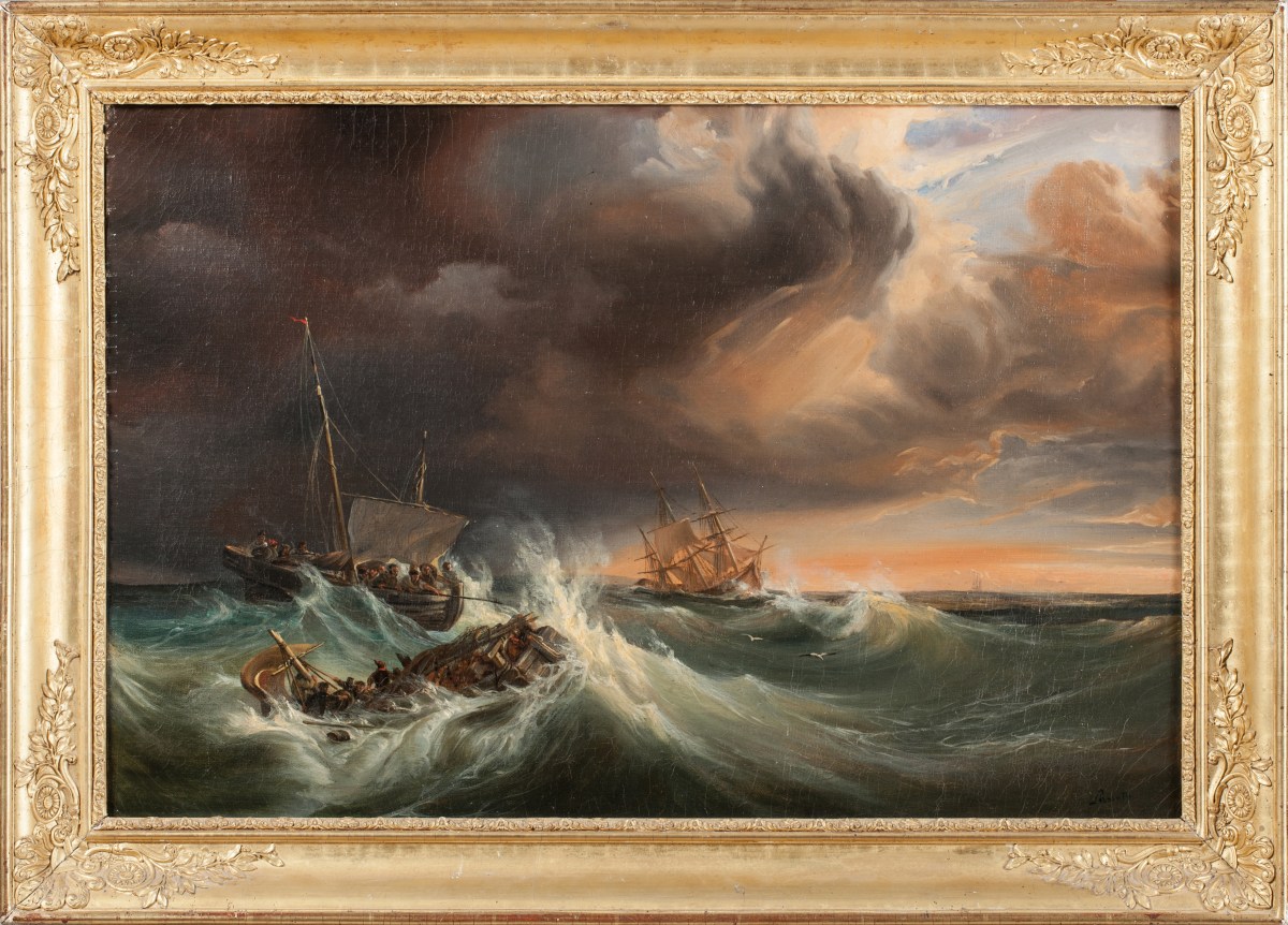 Entourage of Théodore GUDIN. The Shipwreck. Canvas.