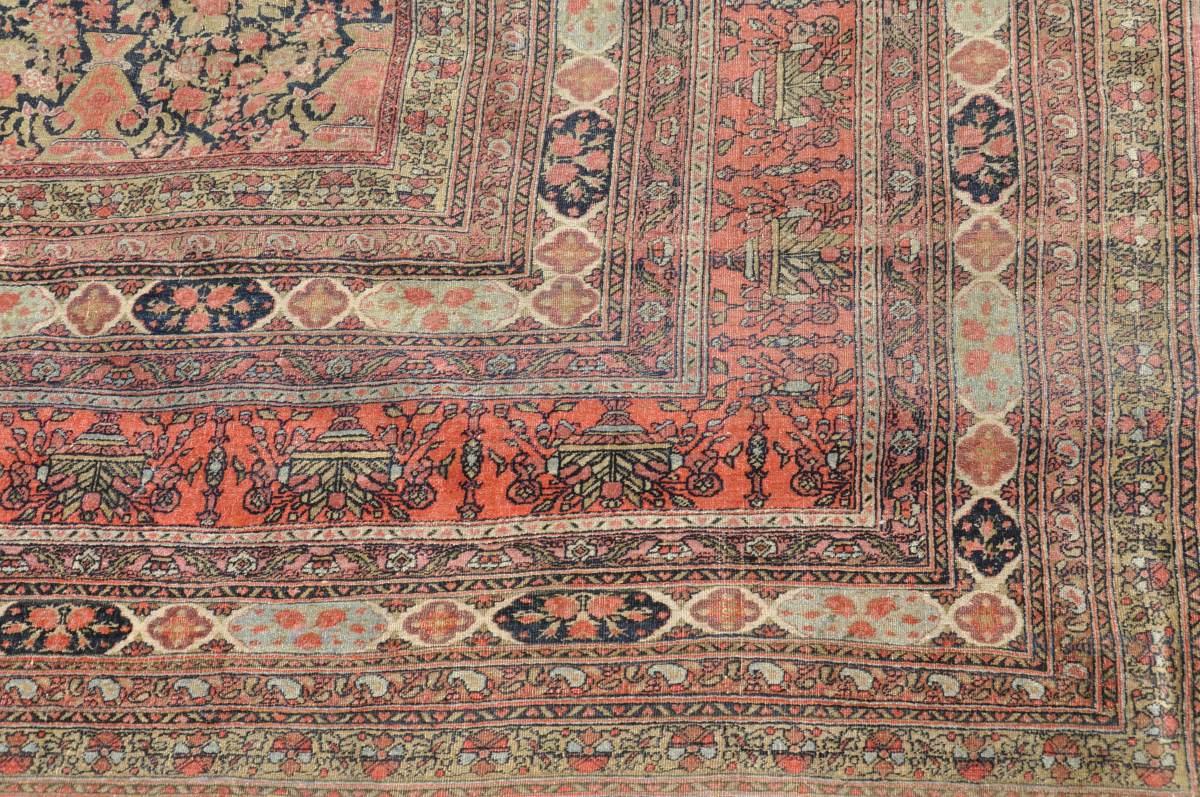 CAUCASE. TAPIS en laine à fond noir orné de vases fleuris de roses. Le champ présente de nombreuses frises florales à fond rouge, vert et crème. Fleurs de Karabakh, Azerbaïdjan.