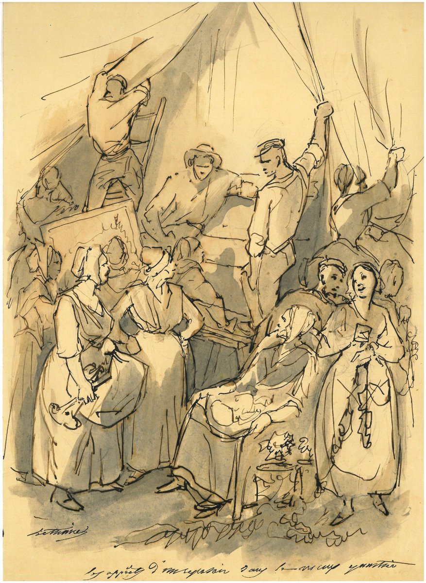 "Les apprêts d'un reposoir dans le vieux quartier".