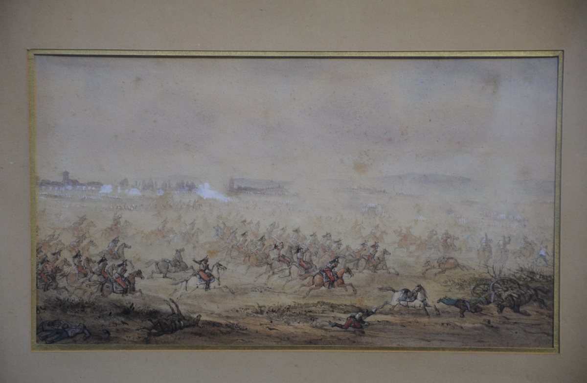 Aquarelle sur crayon noir annotée "Raffet" sur le carton de dos.