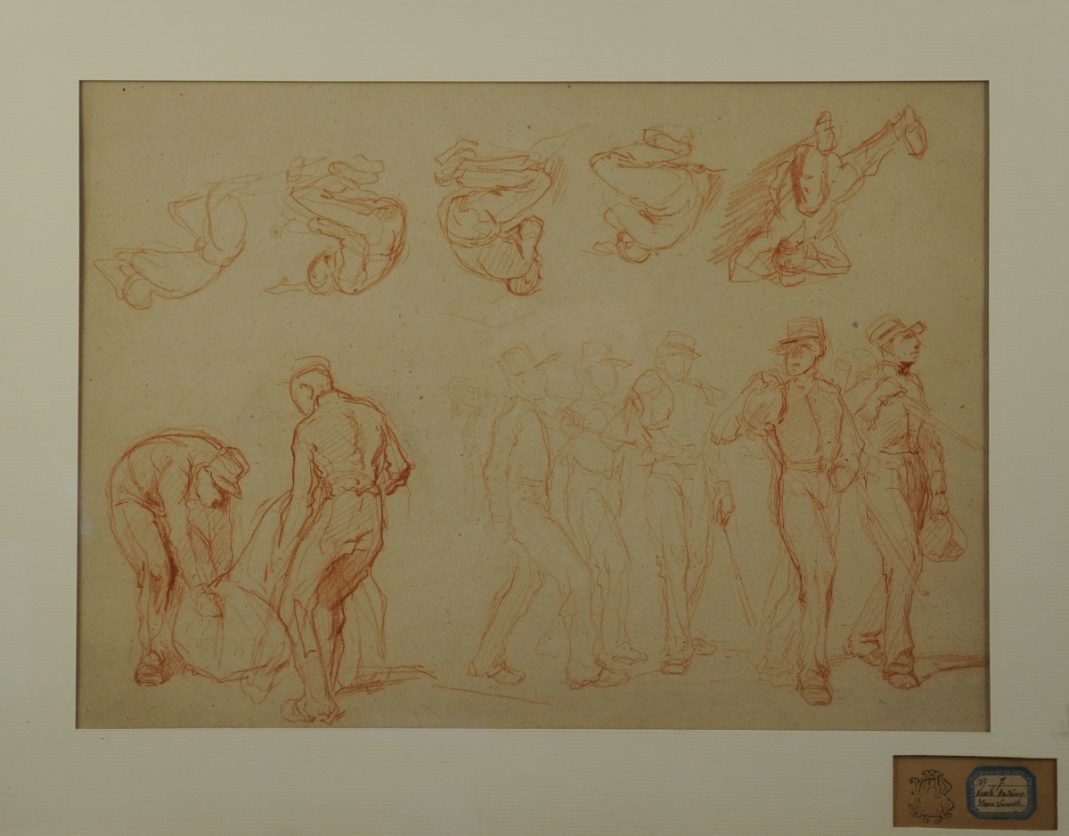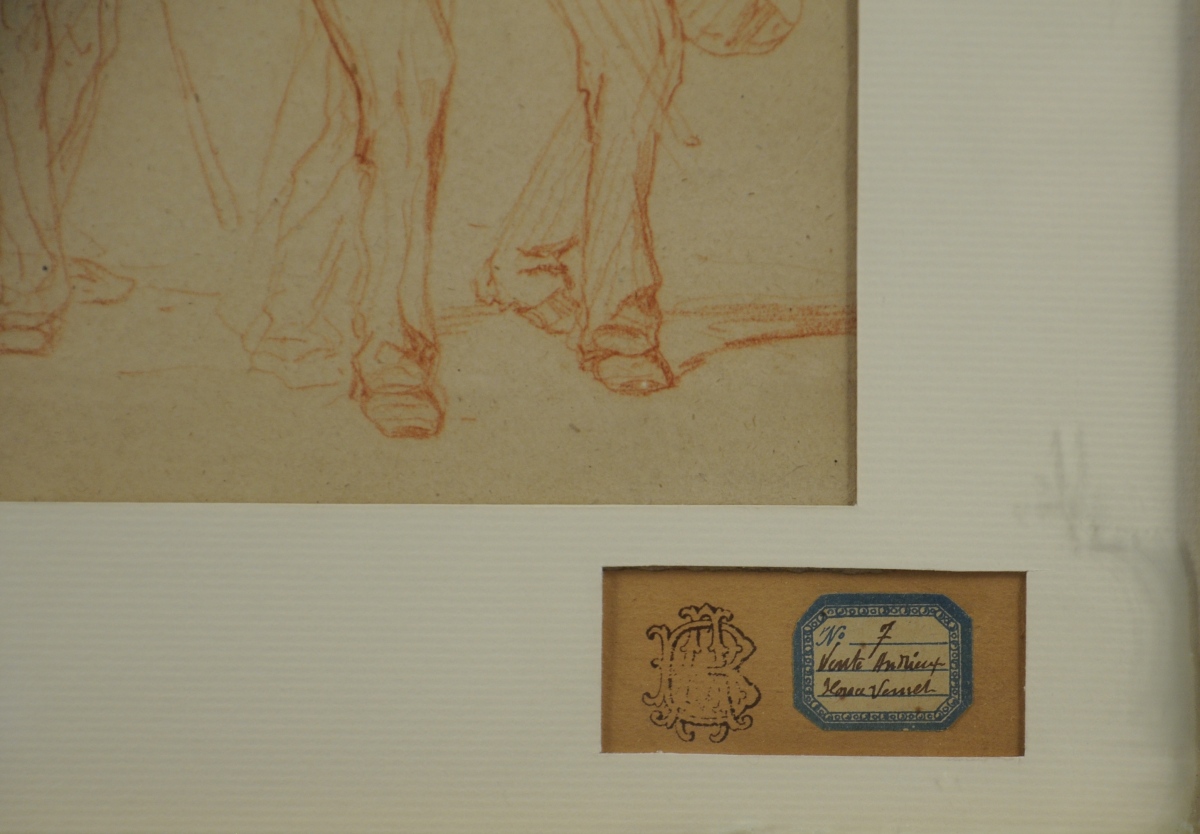 Carton contrecollé: cachet en bas à droite initiales cachet encre AB, et étiquette manuscrite collée: N°7 Vente Andrieux? Horace Vernet