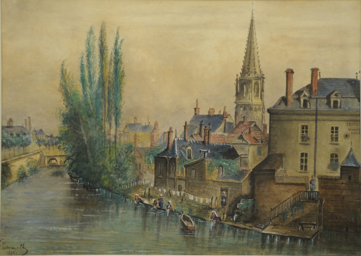 Aquarelle gouachée, signée en bas à gauche et datée 1873.