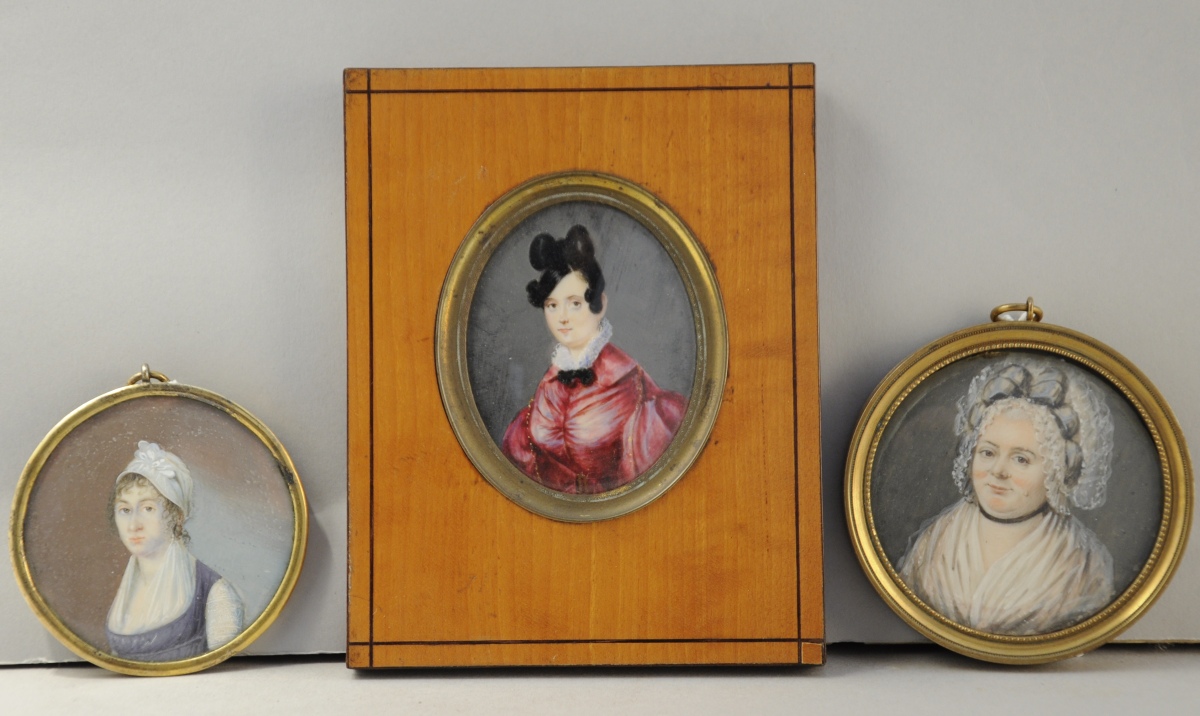 TROIS MINIATURES, la première de forme ovale, les deux autres de forme ronde.