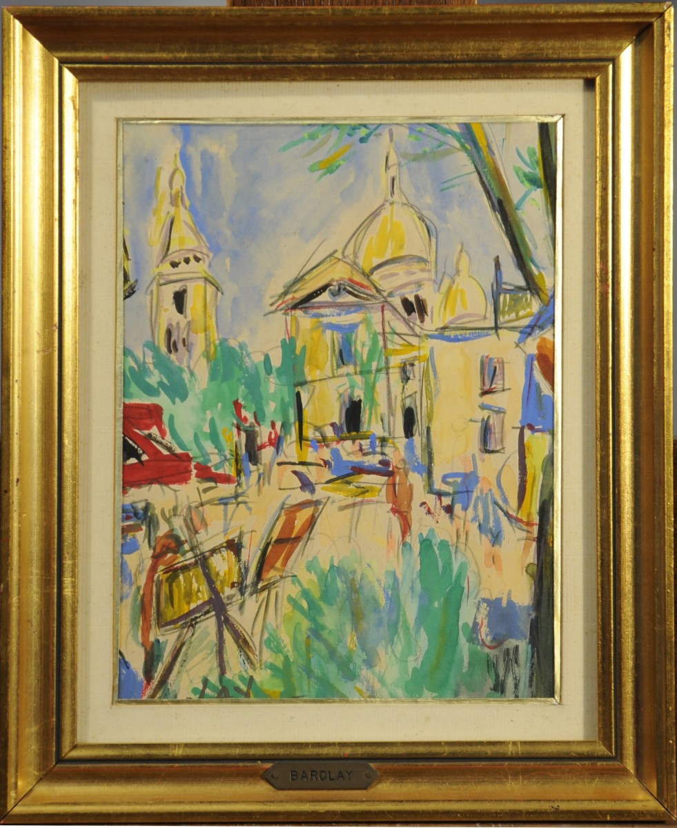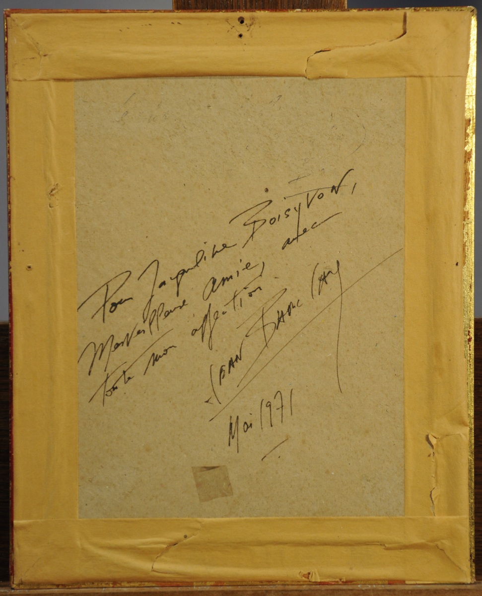 Aquarelle gouachée signée. Envoi au dos: "Pour Jacqueline Boissyvon ma merveilleuse amie avec toute mon affection Jean Barclay mmai 1971".