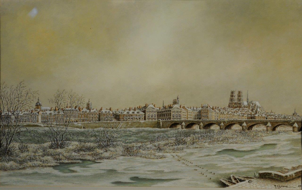 Orléans, la Loire sous la neige, le pont, la vieille ville.