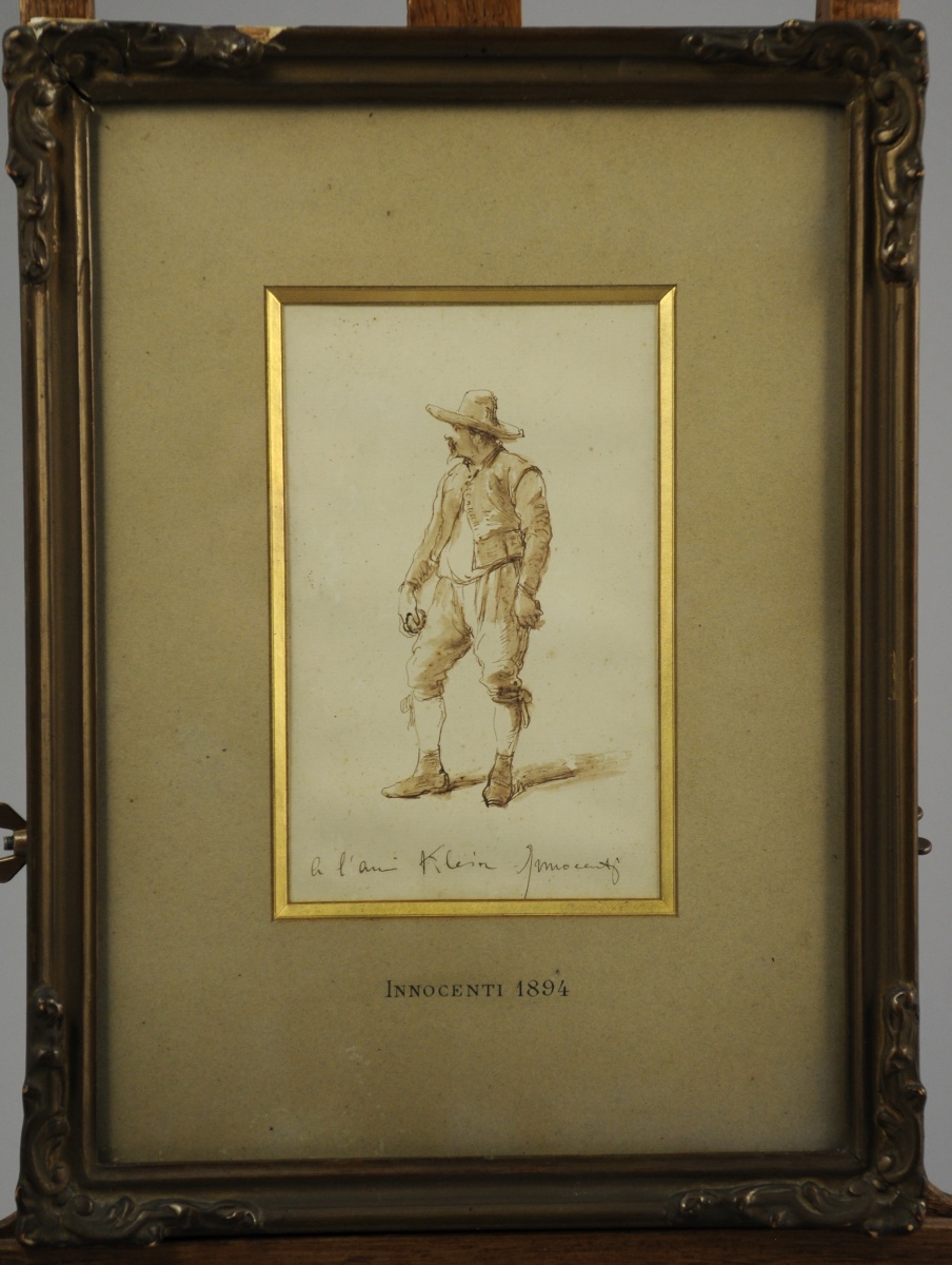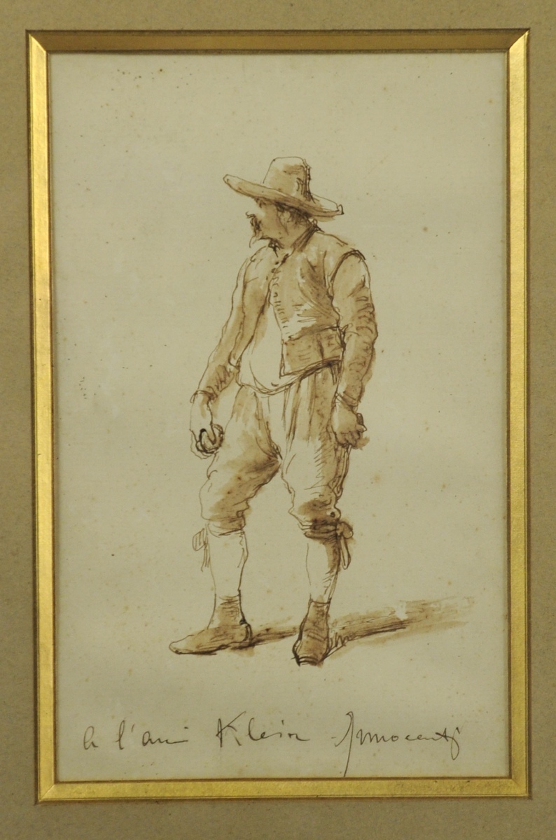 Dessin au sépia, signé en bas à doite et légendé "à l'ami Klein".