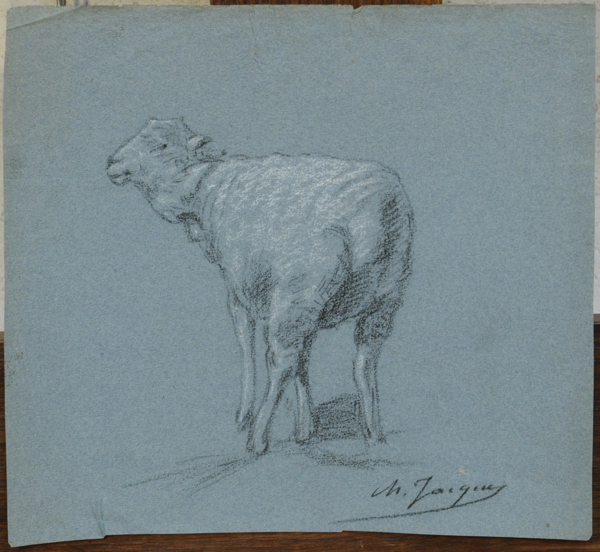 Fusain et rehauts de blanc sur papier coloré signé en bas à droite