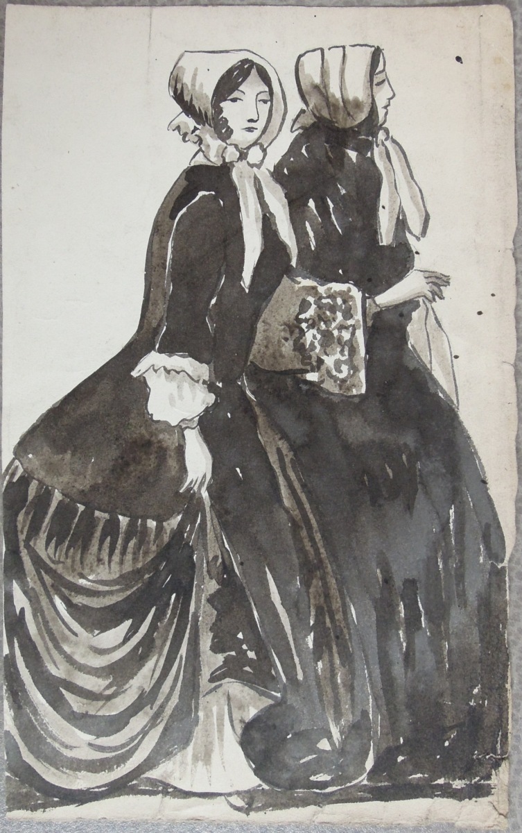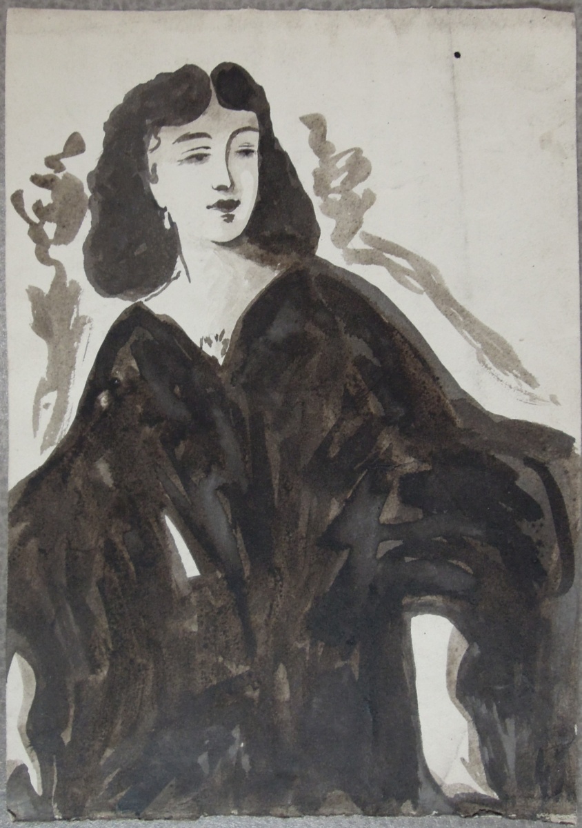 - École française moderne, Portrait de femme, Deux encres de Chine (25 x 17,5 cm et 25,5 x 15,5 cm).