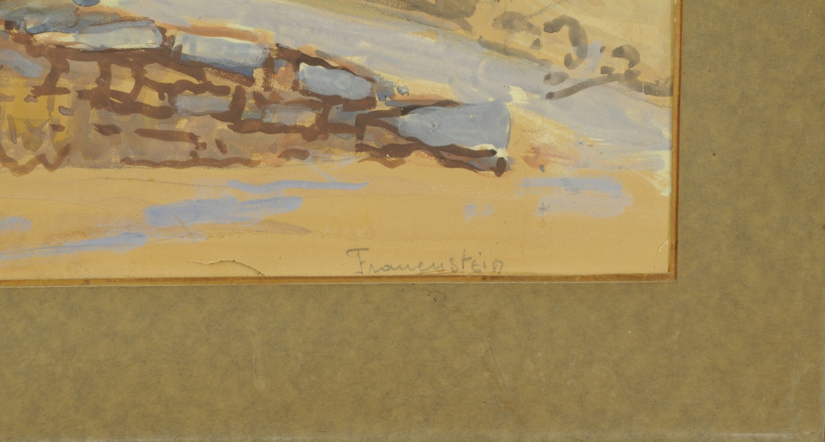 Gouache marouflée sur carton, signée en bas à gauche, titrée en bas à droite et au dos sur une étiquette.