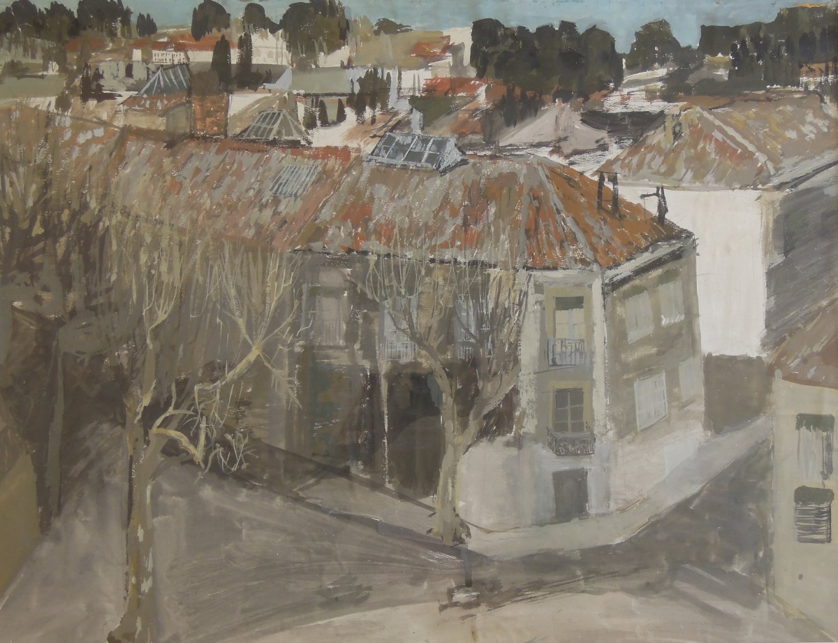 Fusain et gouache sur papier, titré et attribué sur le carton au dos.
