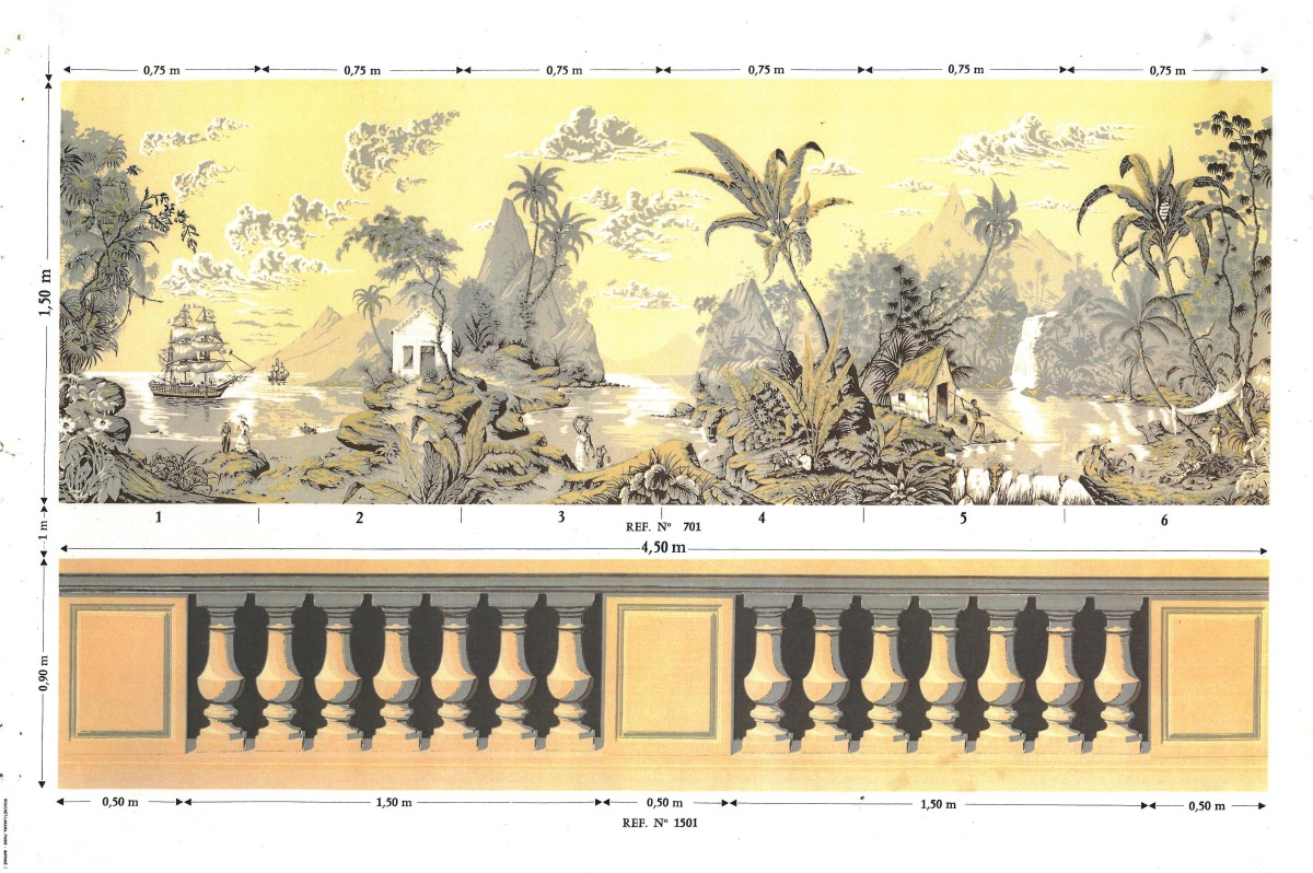 4 lés (lés 3-4-5-6) de papiers peints panoramiques représentant la Grèce