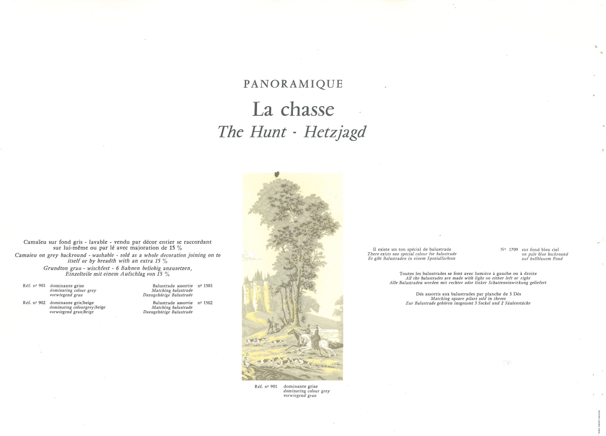 4 lés (lés 2-3-4-6-) de papiers peints panoramiques représentant une chasse