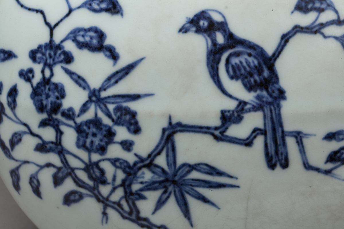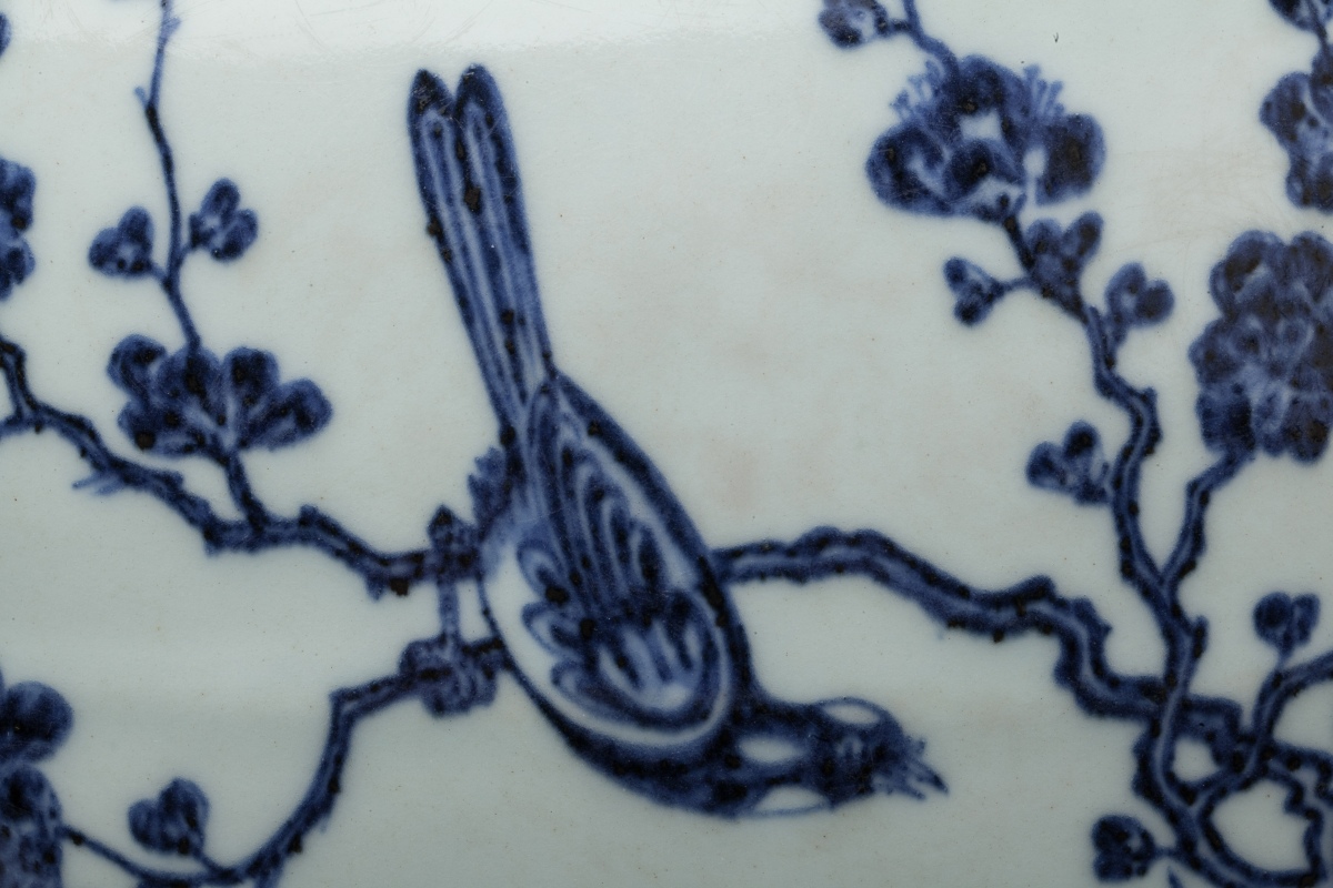 VASE GOURDE bianhu, en porcelaine à décor bleu de cobalt et camaïeu sous couverte, d'oiseaux branchés.