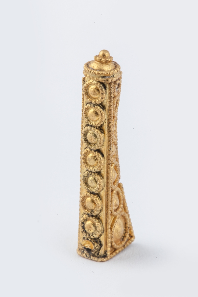 TUBE en or orné sur trois faces de cercles pointés.