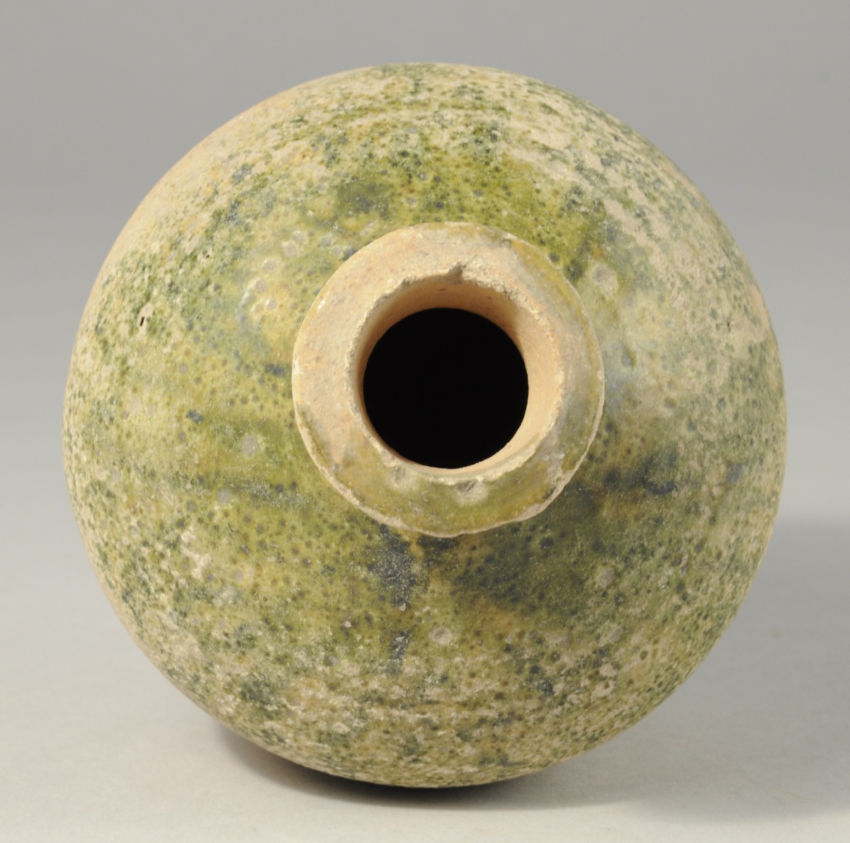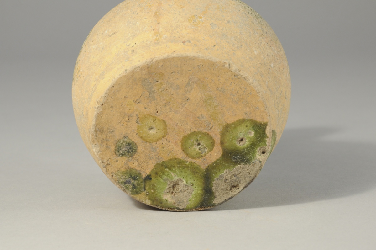 VASE. Terre cuite à décor vernissé vert olive.
