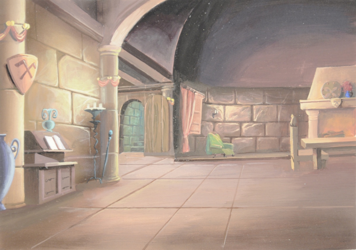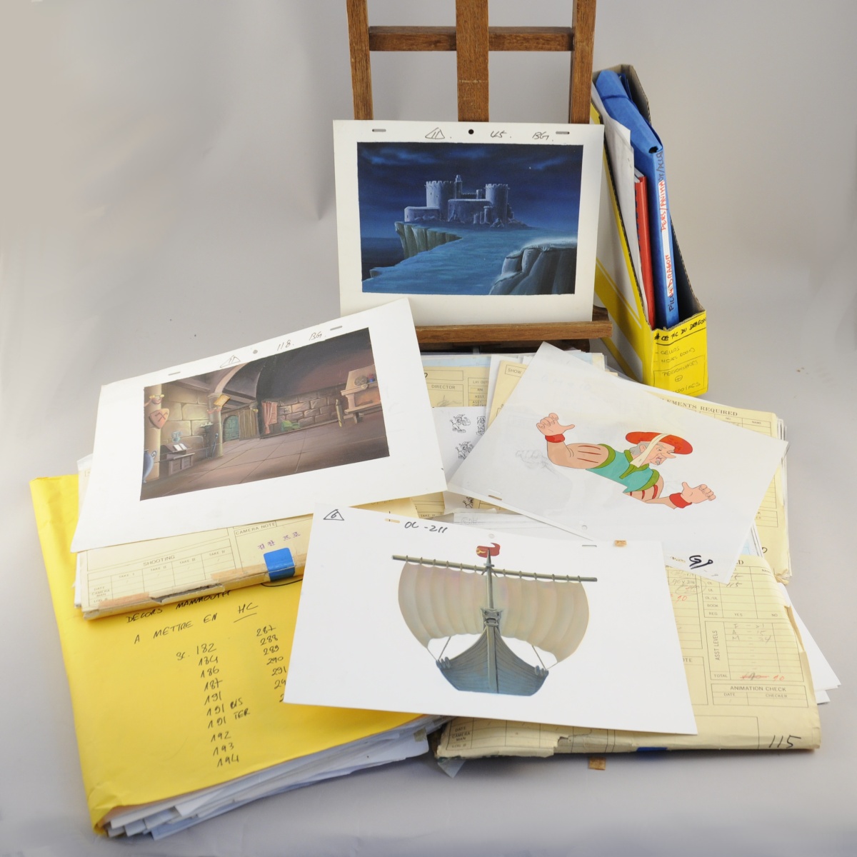 Carton des archives graphiques d'un épisode de la série de dessins animés " Quasimodo " (" The magical adventure of Quasimodo " en anglais) produite en 1995 par Ares Films, comprenant notamment: model sheet, celluloïd et background...