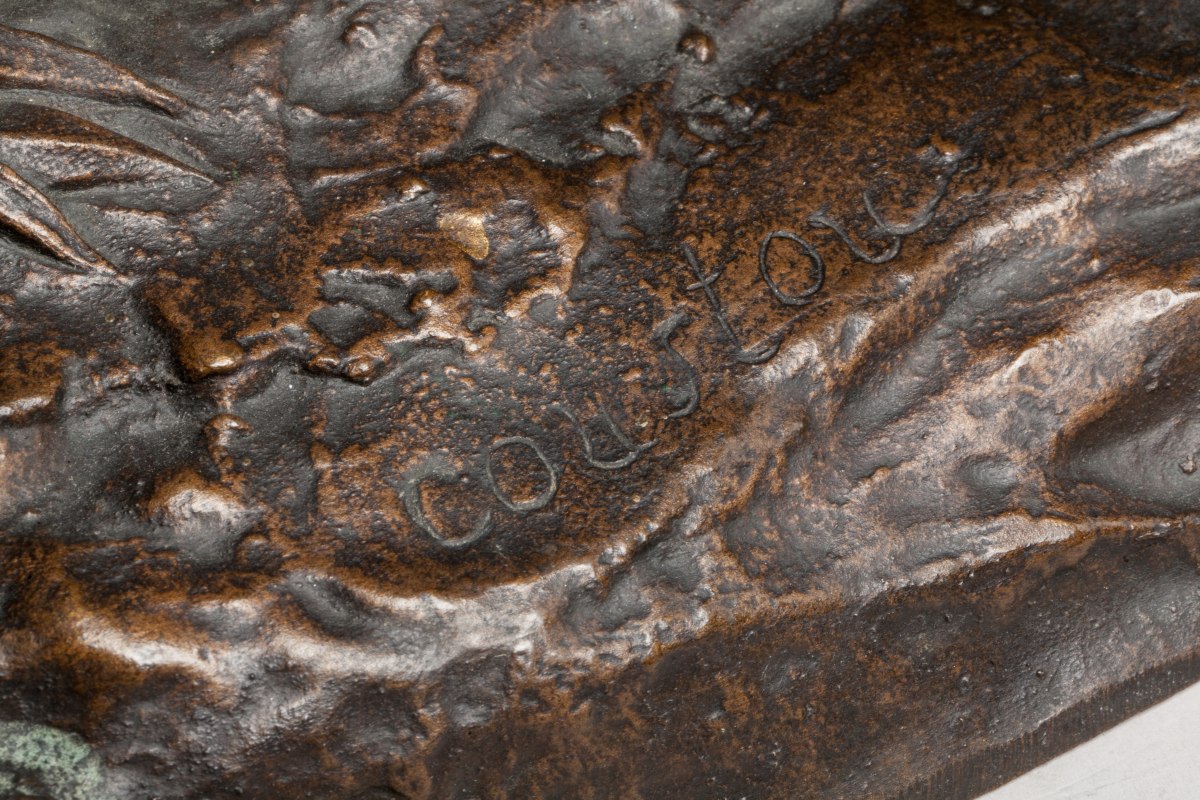 Bronze patiné et signé.