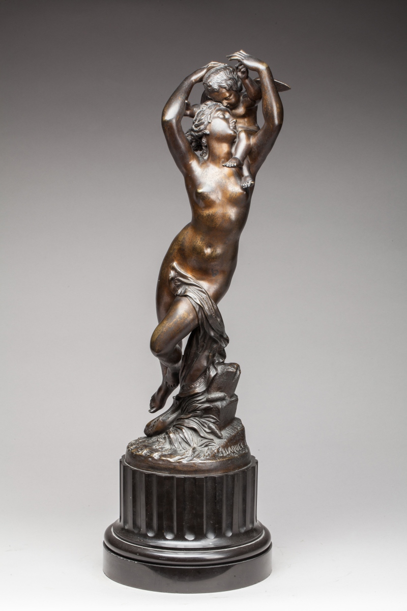 Sur un SOCLE en COLONNE cannelée de marbre noir.