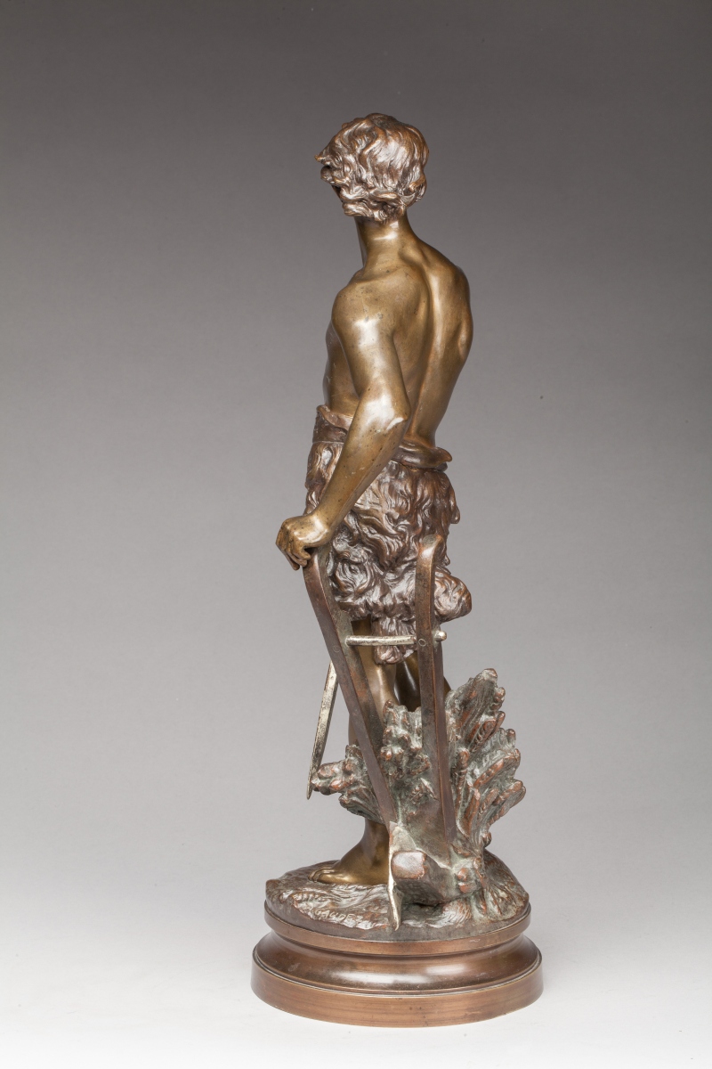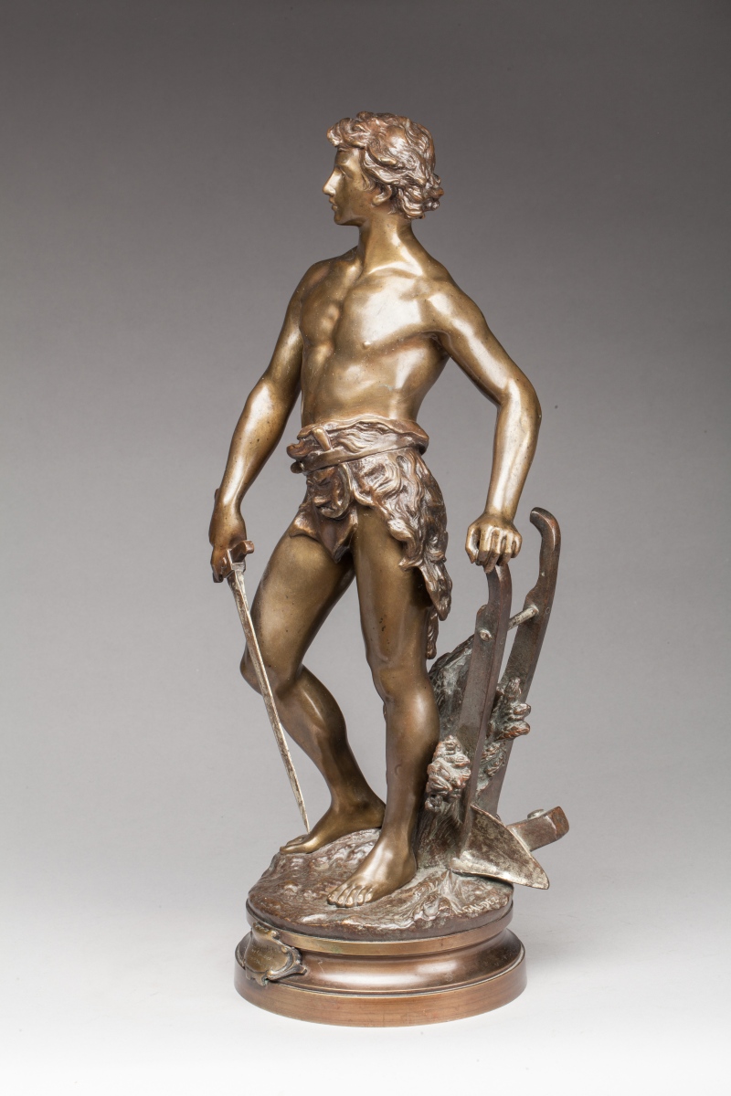 Base de forme ronde portant un cartouche marqué "Devoir / Par A. Gaudez / Hors-Concours".