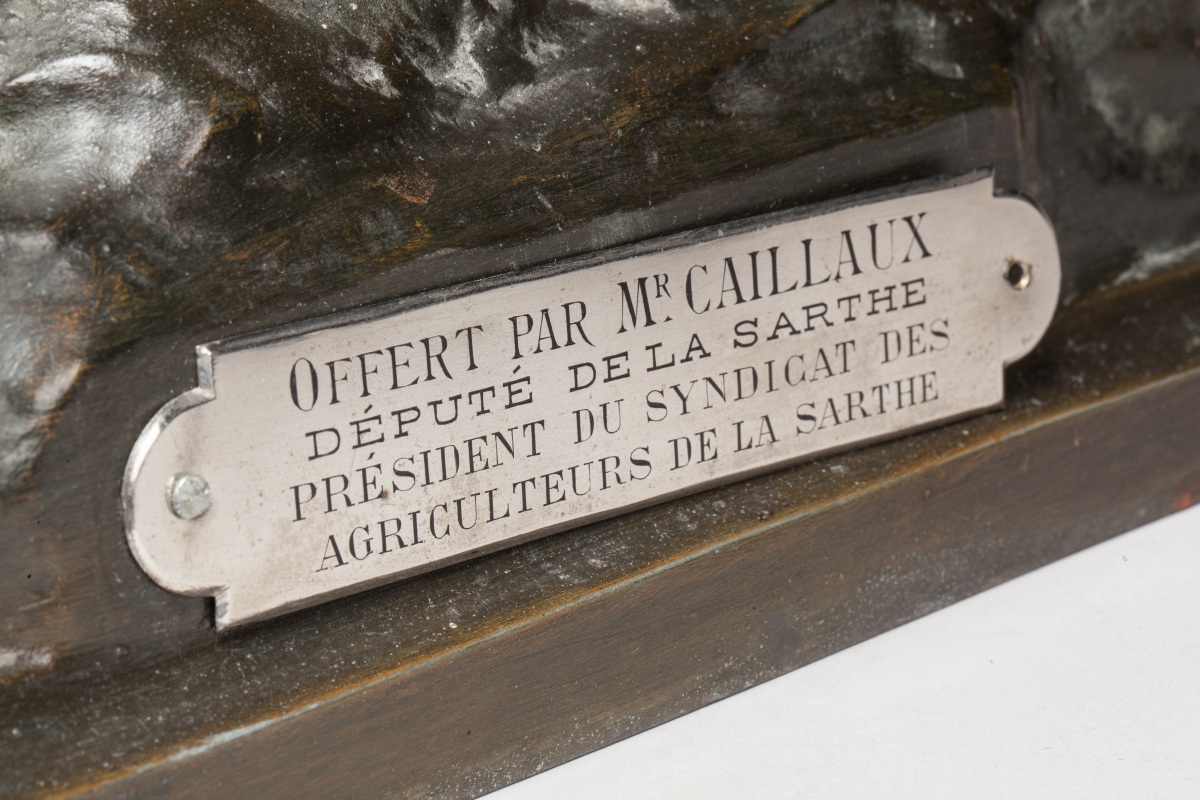 Joseph CAILLAUX homme politique français à la carrière mouvementée, a eu d'importantes responsabilités ministérielles à partir de 1906. Député de Mamers (Sarthe) de 1898 à 1919, ce bronze aurait été offert en récompense entre 1898 et 1906 à Maurice Coulon maquignon et jockey.