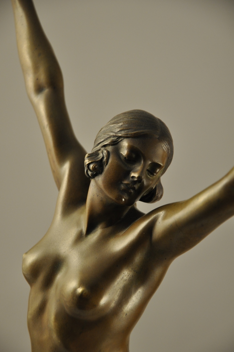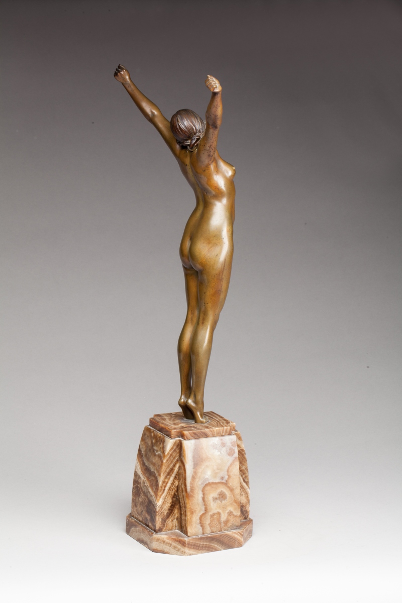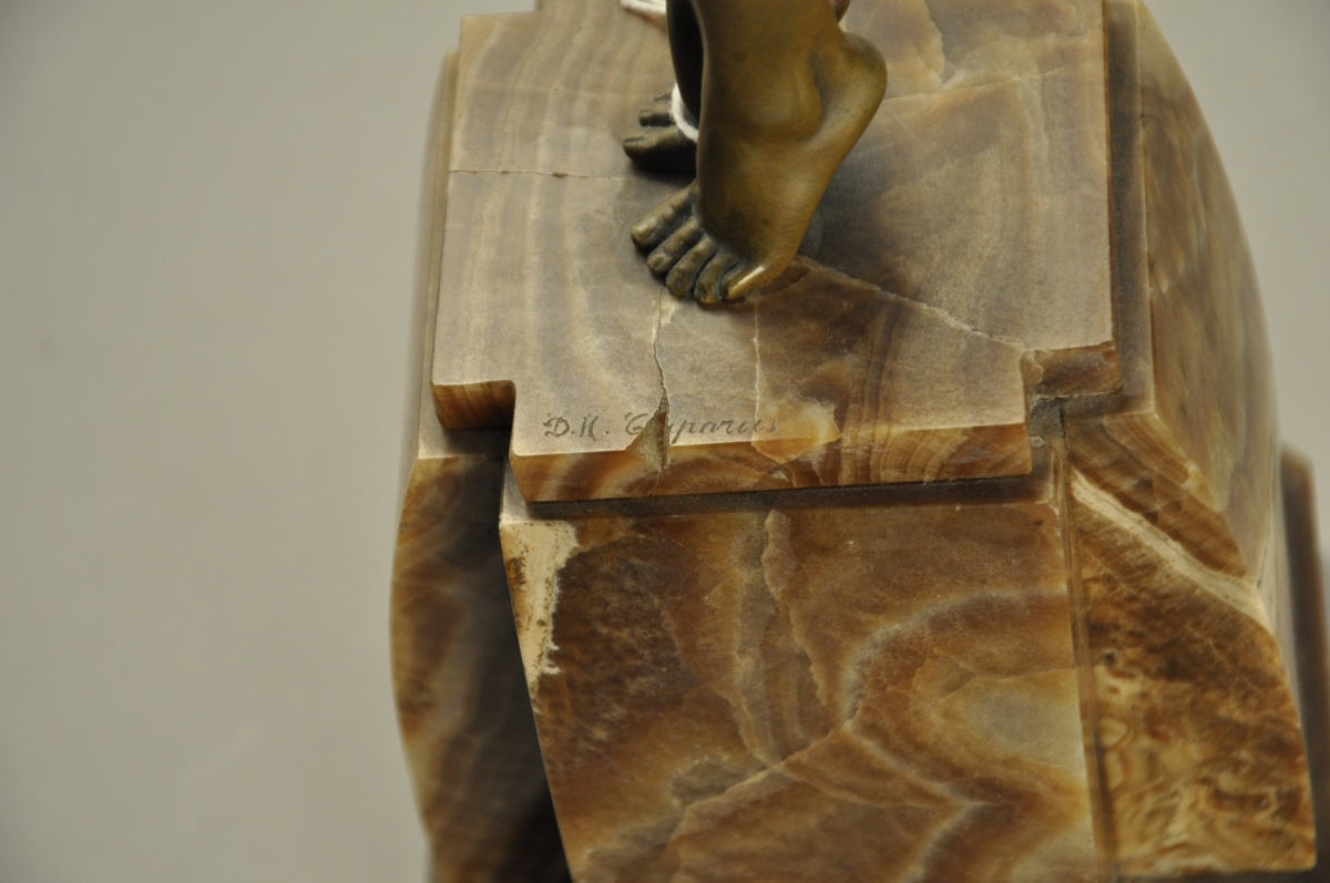 Bronze à patine mordorée signé. Socle de marbre brèche beige (accdt.) signé "D.H. Chiparus" et portant l'inscription "ETLING Paris".