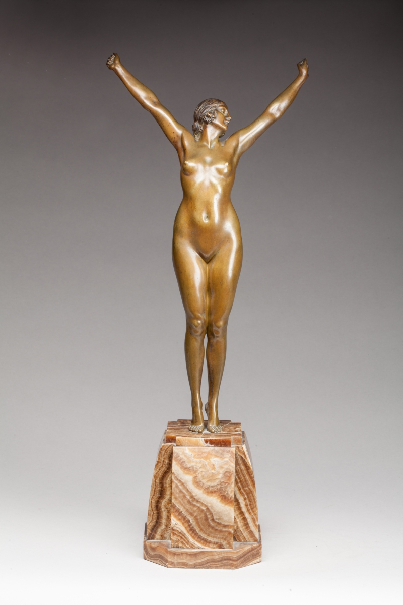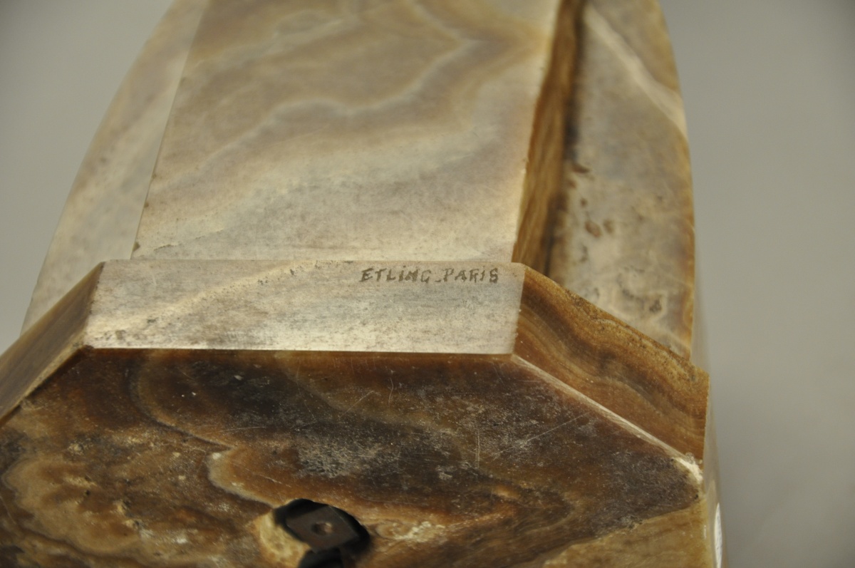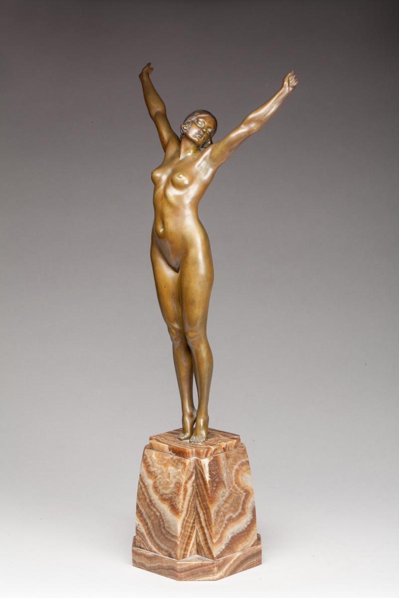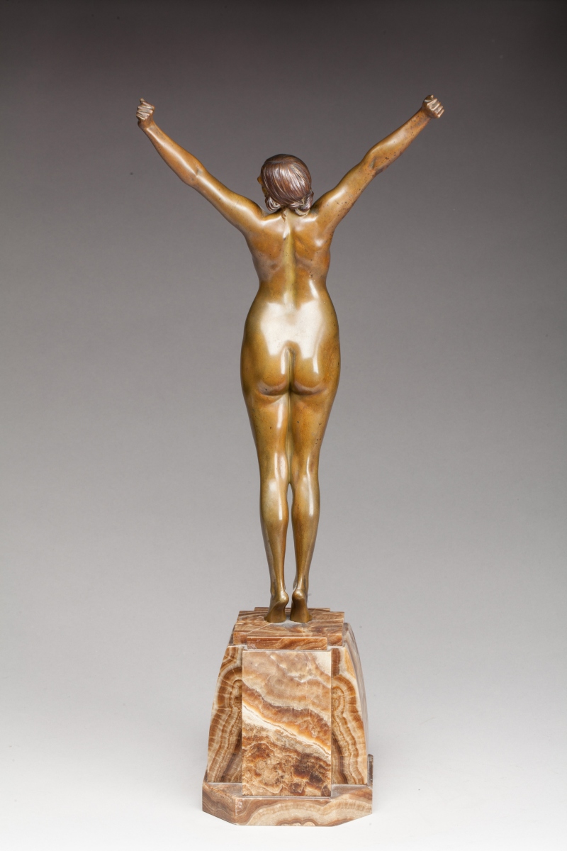 Bronze à patine mordorée signé. Socle de marbre brèche beige (accdt.) signé "D.H. Chiparus" et portant l'inscription "ETLING Paris".