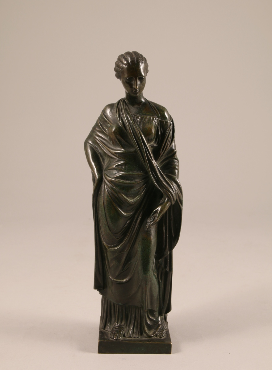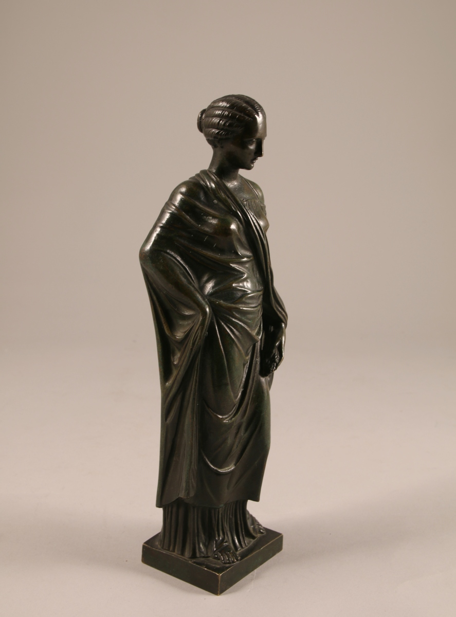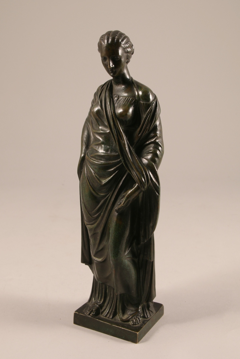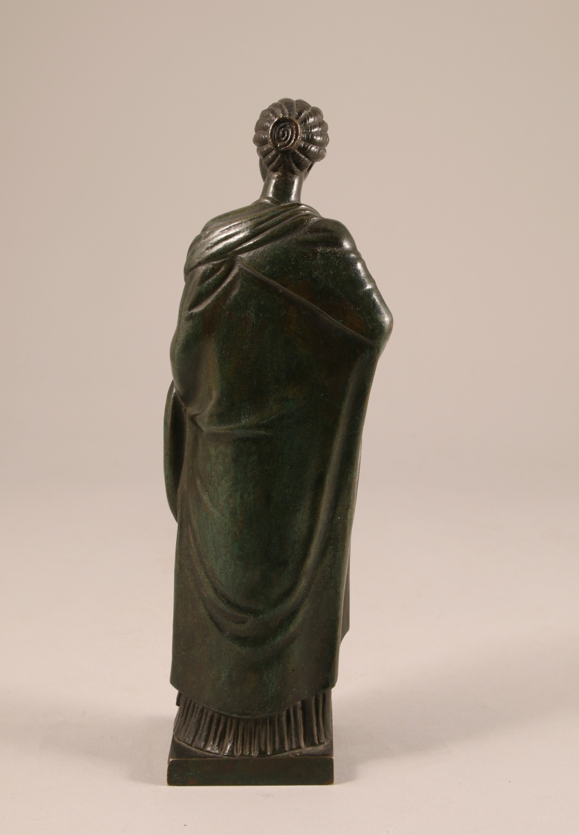 STATUETTE en bronze patiné. Sujet féminin drapé.