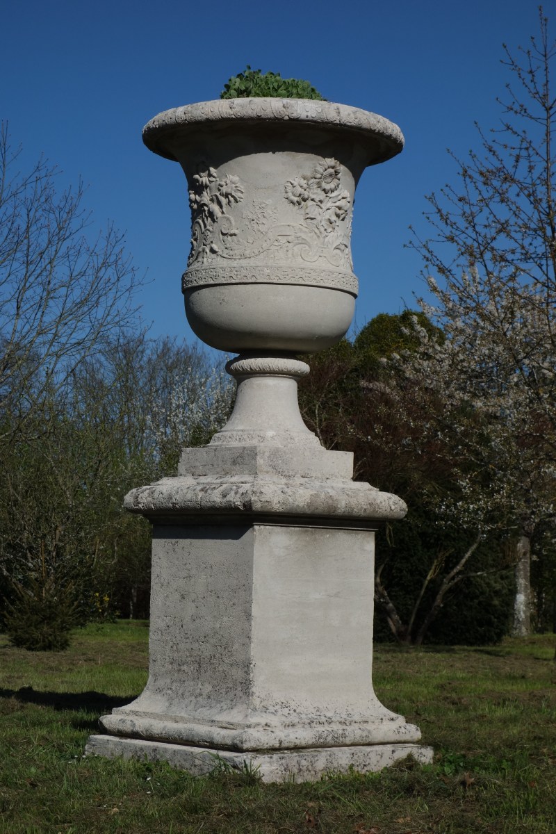 Réduction de la paire de vases dessinée par Mansart pour l'allée Royale de Versailles et sculptée par Slodtz et Marc Arcis en 1687.