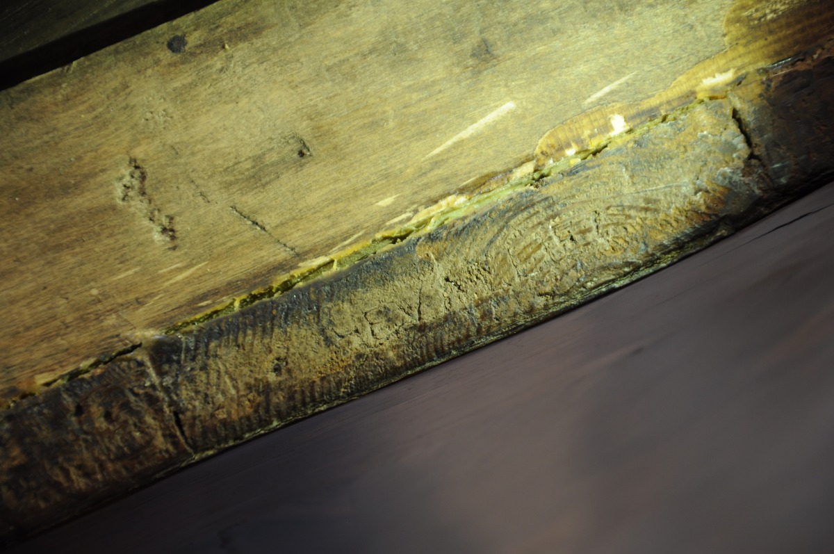 Bronzes ciselés et dorés rapportés tels que boutons de tirage, entrées de serrure, chutes, sabots en applique et cul de lampe.