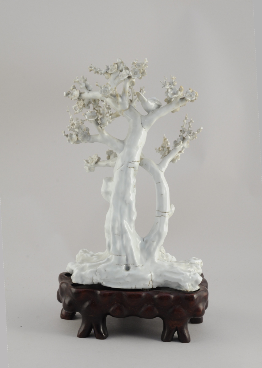CHINE. Paire de BUISSONS AUX OISEAUX BRANCHÉS en porcelaine blanche.