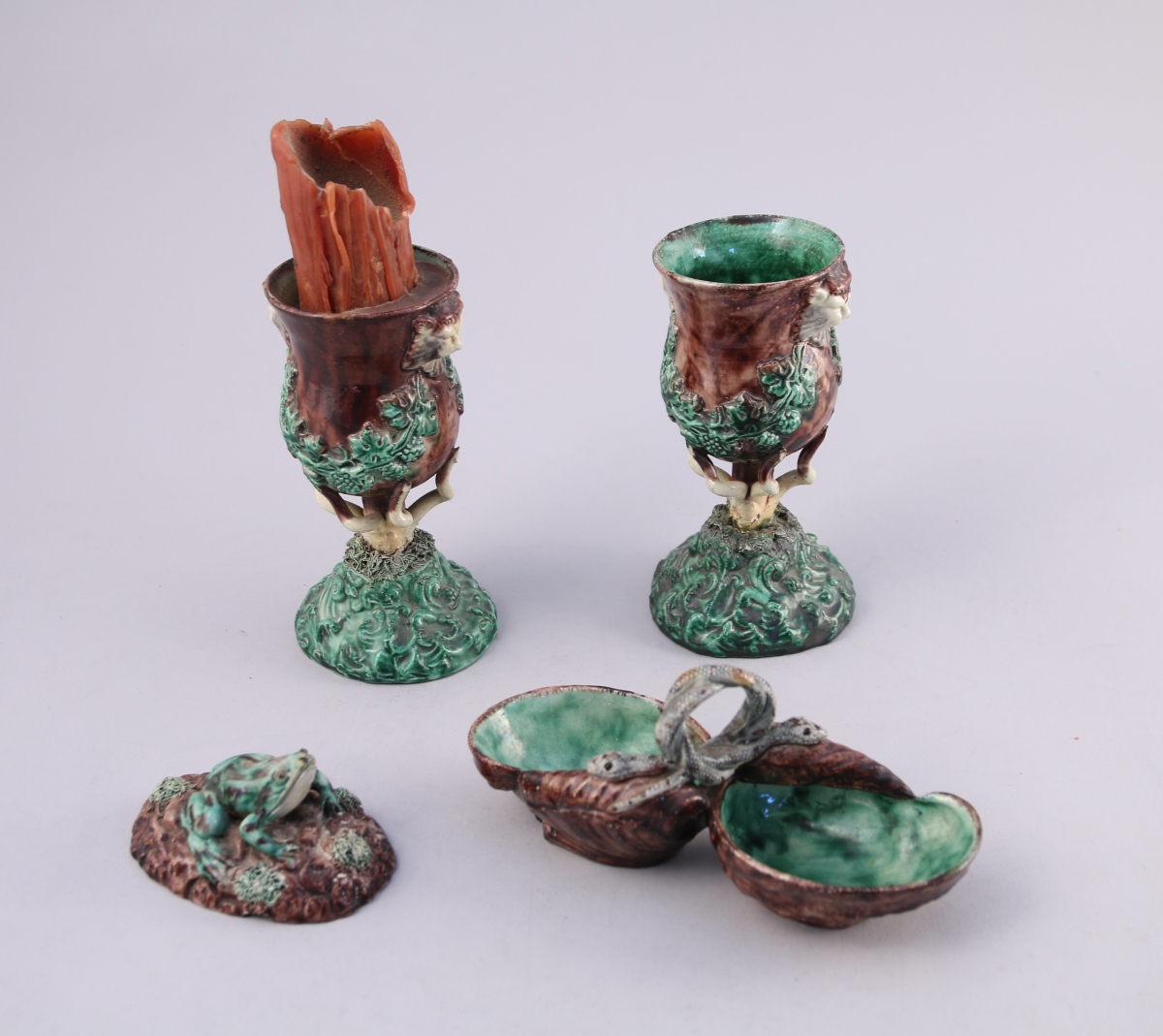- Paire de BOUGEOIRS à décor naturaliste. Fin XIXe. Haut. 16 cm. (accidents, manques et restaurations)