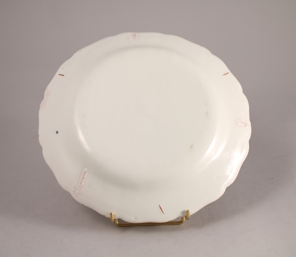SAINT-CLÉMENT, faïence fine. ASSIETTE PLATE à fond blanc. Décor d'une guirlande fleurs. Au centre, monogramme "GB" traité en dorure.