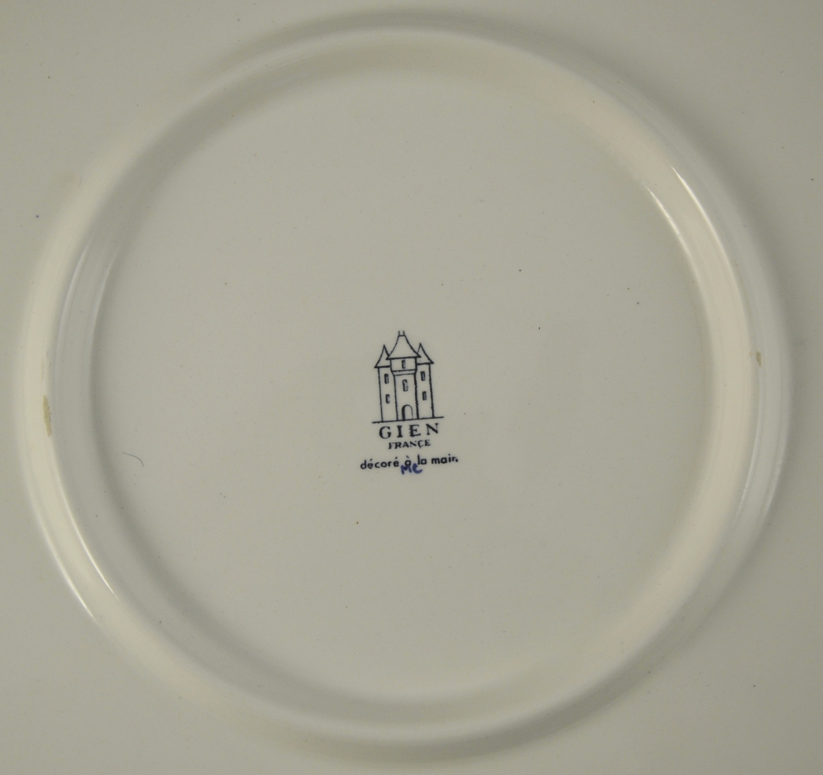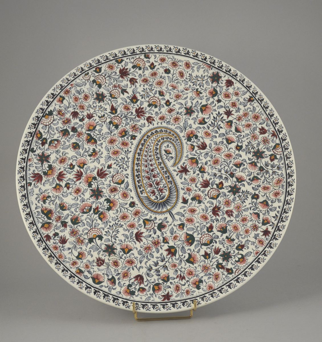 GIEN. GRAND PLAT, modèle "Cachemire", de forme circulaire à décor floral polychrome.