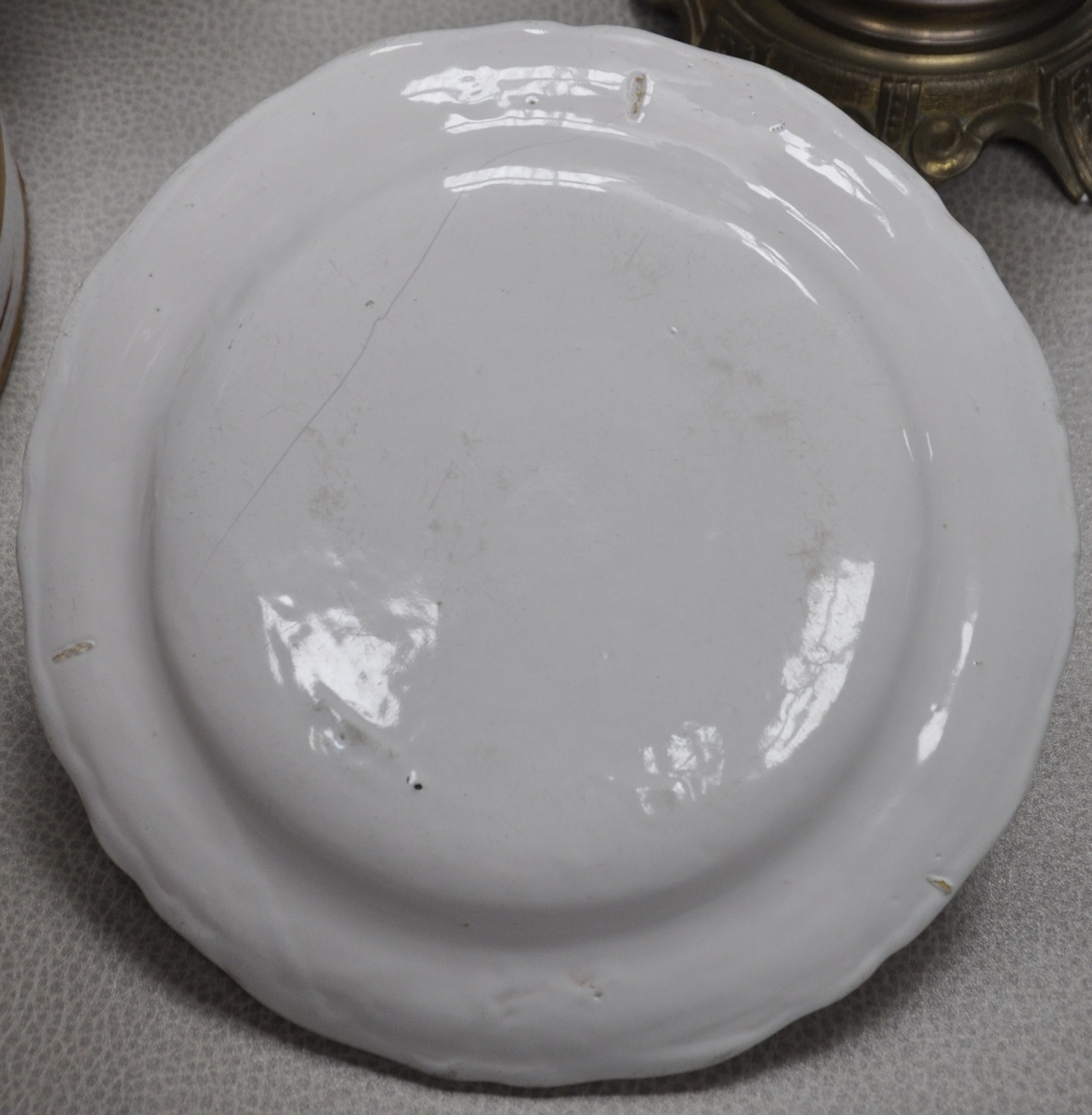 MOUSTIERS? ASSIETTE en faïence émaillée blanc, l'aile à décor d'armoiries en bleu sur l'aile.