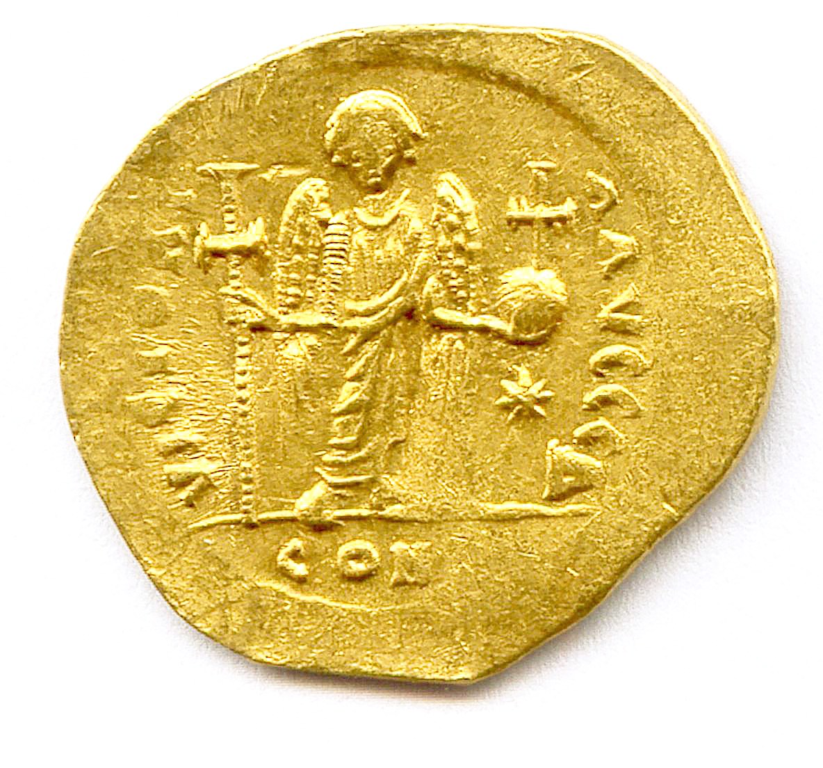 Justinien Ier (527-565) Solidus (type B) frappé à Consgtantinople. Sear 137(4,44 g) Beau.