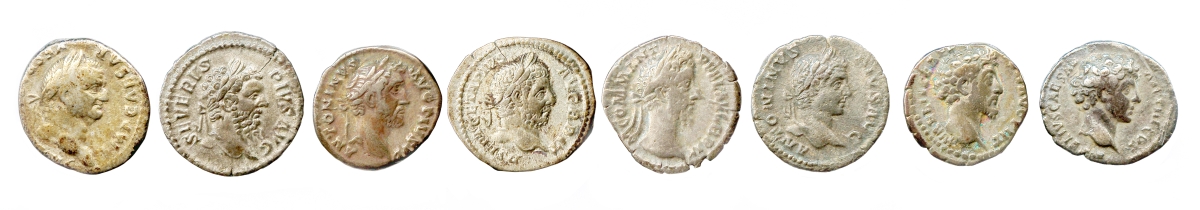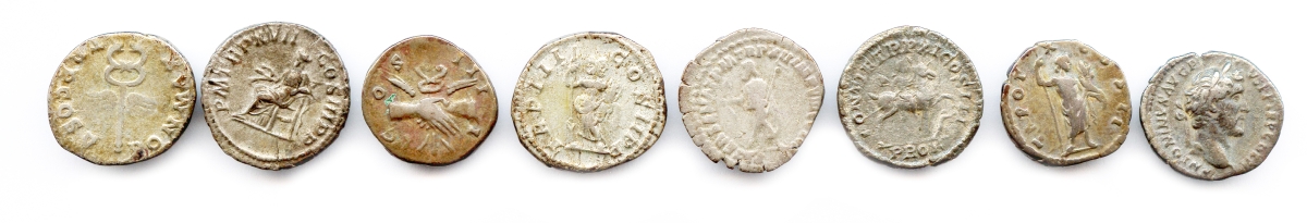 Lot de huit deniers romains en argent: