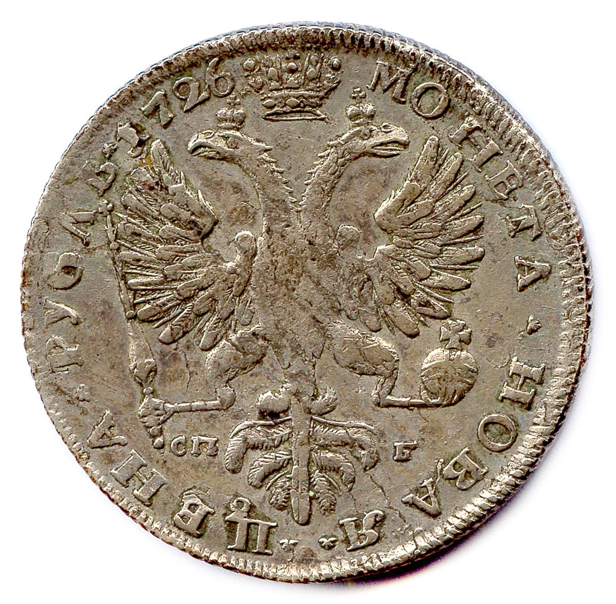Rouble dargent 1726 Saint Petersbourg. T.B.