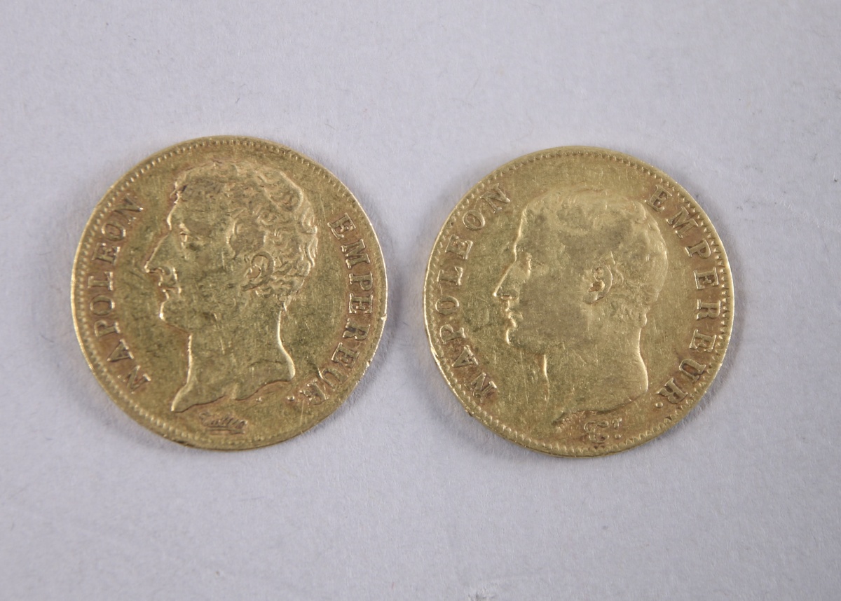 FRANCE. 20 FRANCS or, 2 pièces, Napoléon Ier tête nue, Paris An XII 1800, Paris an XIII 1801.